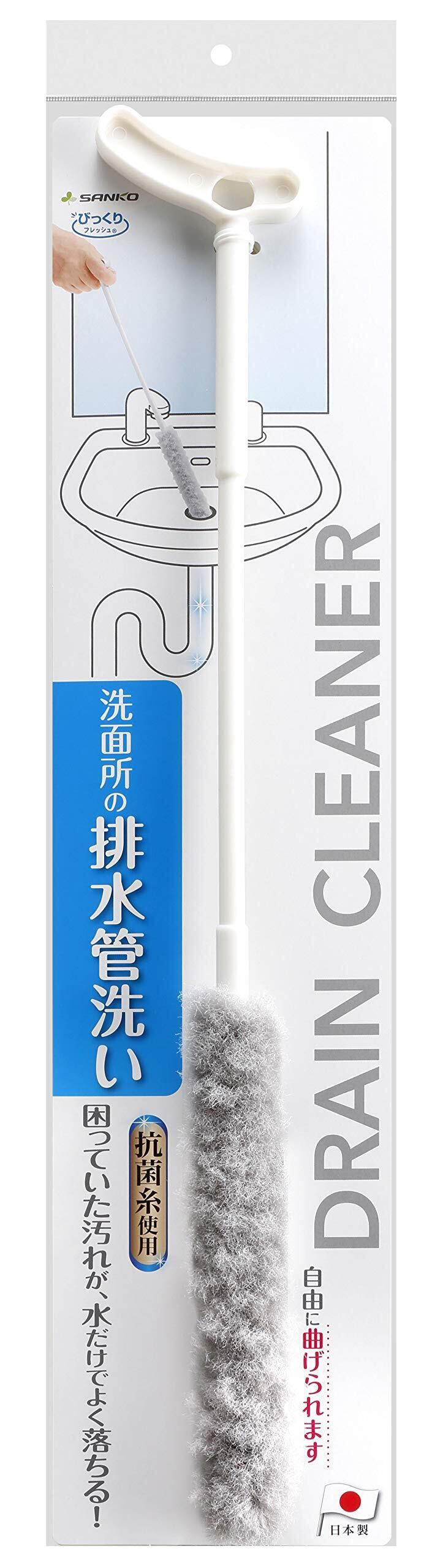 【在庫処分】サンコー 排水管ブラシ 抗菌加工 洗面 パイプ 配管 隙間 汚れ落とし 水だけでも汚れが落とせる特殊繊維 びっくりフレッシュ グレー 日本製 BH-95
