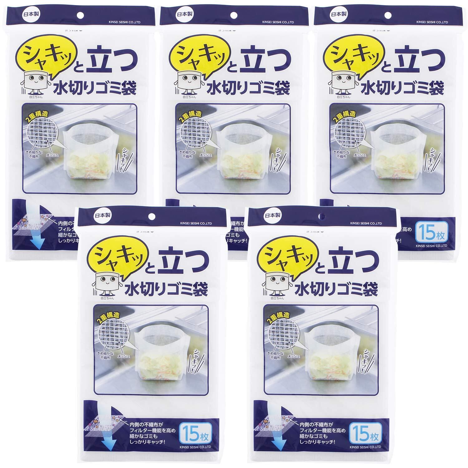 金星製紙 排水口水切りカゴ ホワイト 約26×15cm シャキと立つ水切りゴミ袋 日本製 15枚入 5個セット