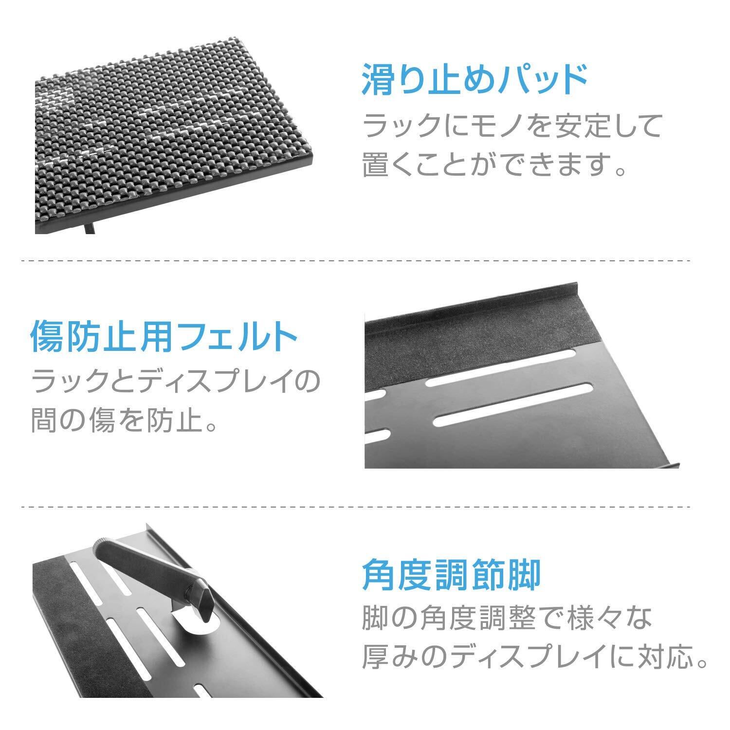 工具不要でディスプレイやテレビの上面に小物などを置けて、スペースを有効活用!