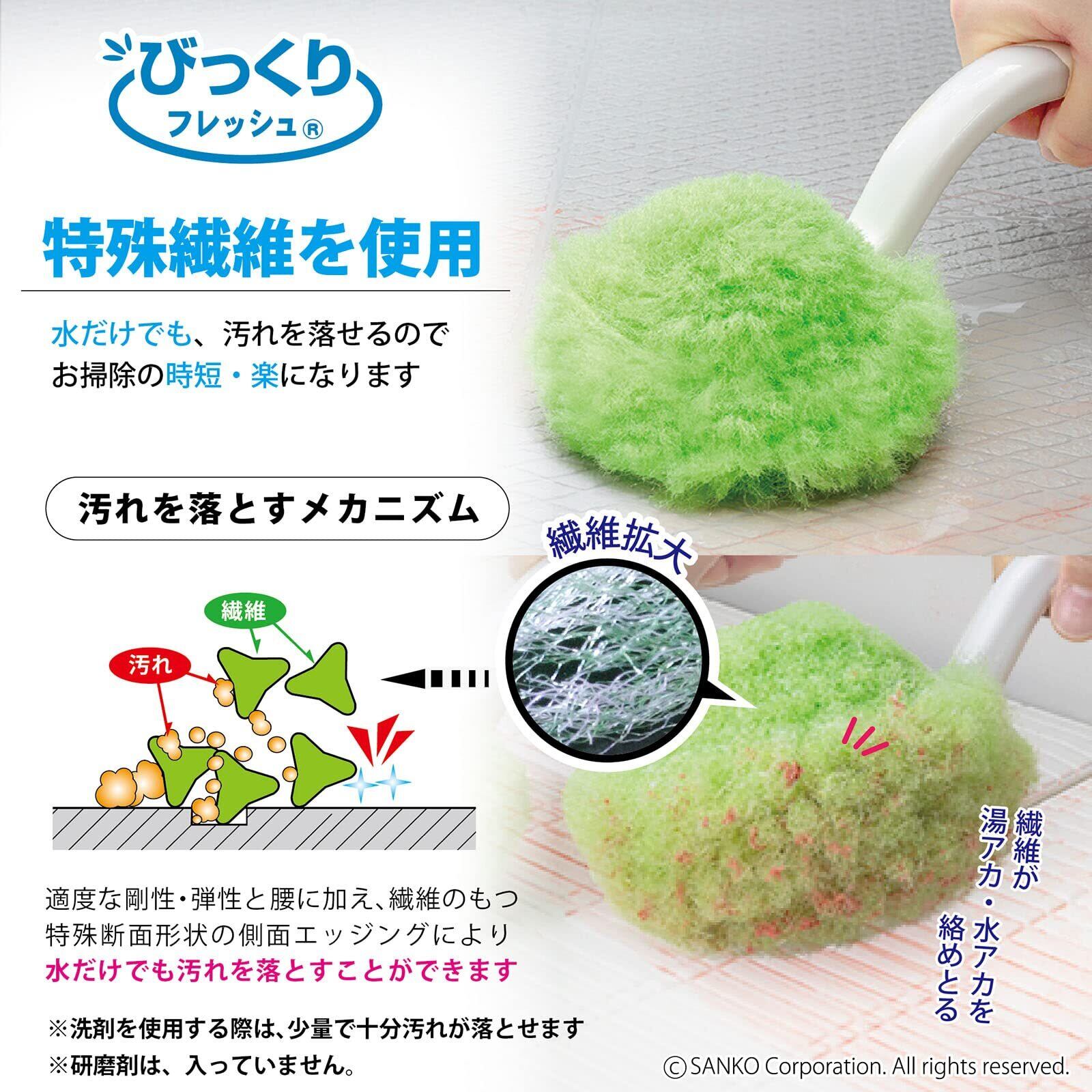 【新着商品】サンコー お風呂 スポンジ 浴槽 掃除 柄付き ブラシ ふわふわバス床洗い 水だけでも汚れが落とせる特殊繊維 びっくりフレッシュ グリーン 日本製 BI-17