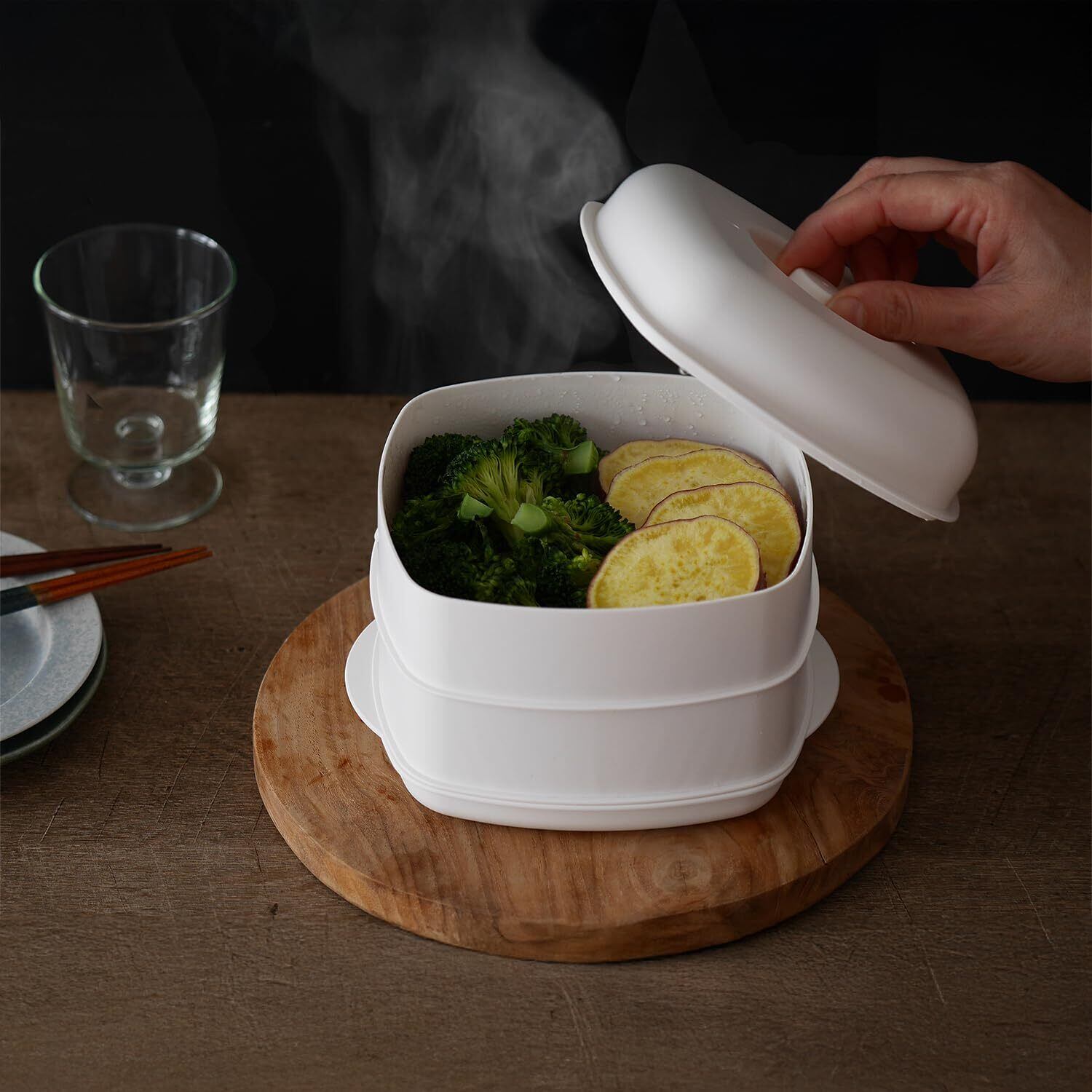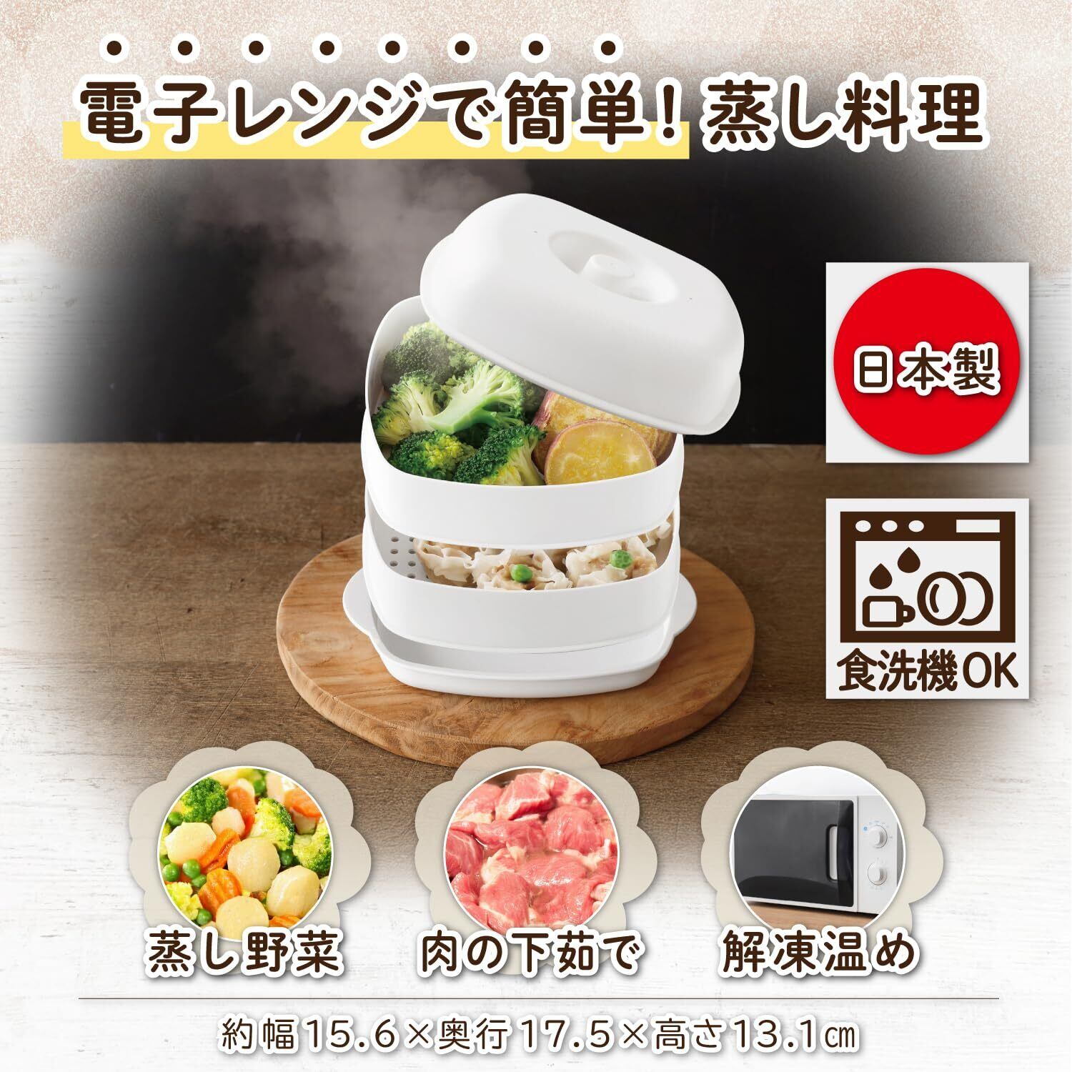 アストロ 蒸し器 2段 ホワイト せいろ 【電子レンジ調理器 日本製 2品同時に調理】 抗菌 食洗機対応 スチーム加熱でふっくら仕上がる スチーマー 蒸し料理 温野菜 蒸し鶏 下ごしらえ 冷凍ご飯加熱 ヘルシー料理 ダイエット料理 510-57