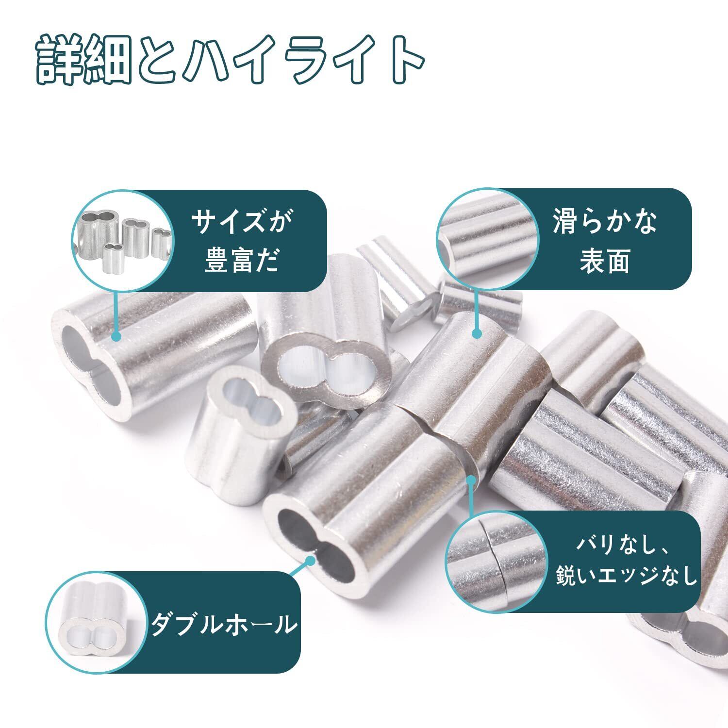 ワイヤーロープスリーブ アルミスリーブ 圧着ループスリーブ ロープチャック シルバー アルミニウム 6サイズセット(M1.2,M1.5,M2,M2.5,M3,M4) 89個入り