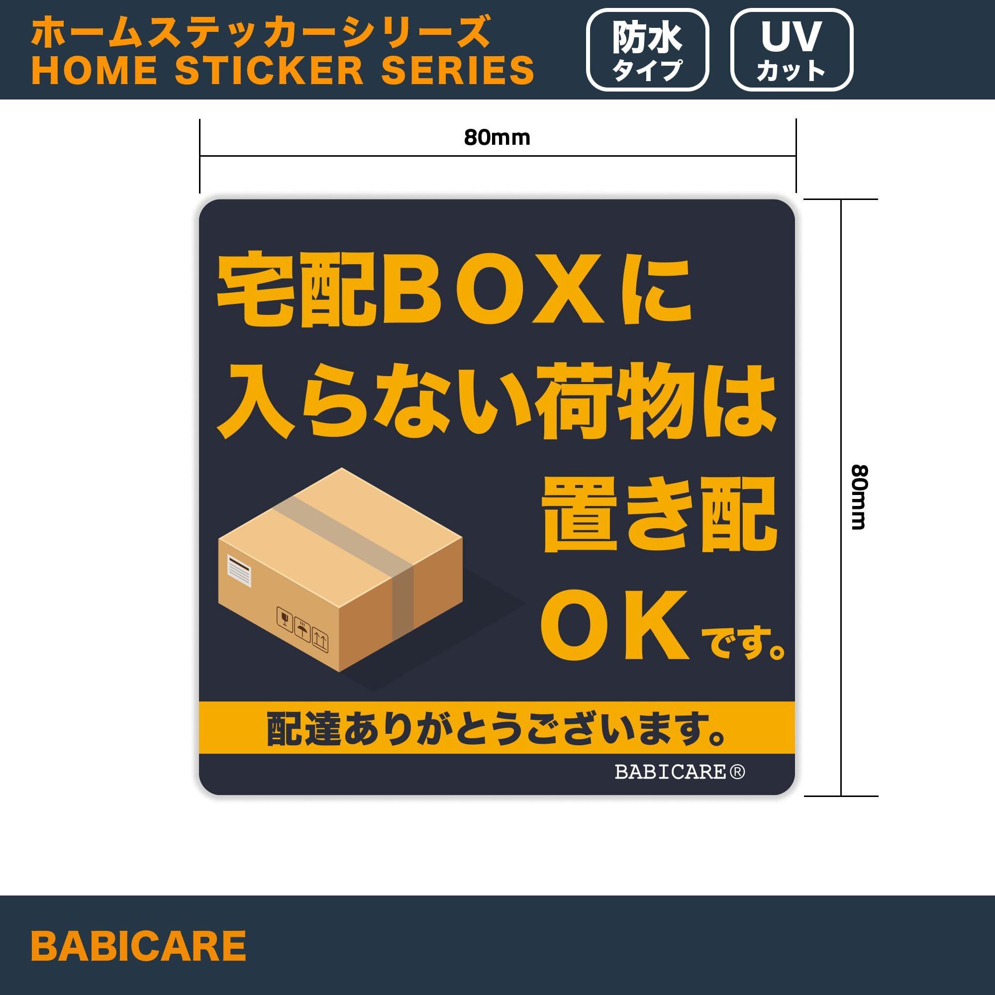「【2022最新】BABICARE 宅配BOXに 入らない荷物は置き配 OKです ステッカー」は、あなたの宅配受取をスマートにサポートするためのアイテムです!荷物の受取時に、安心感を与えるデザインが特長です。