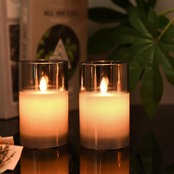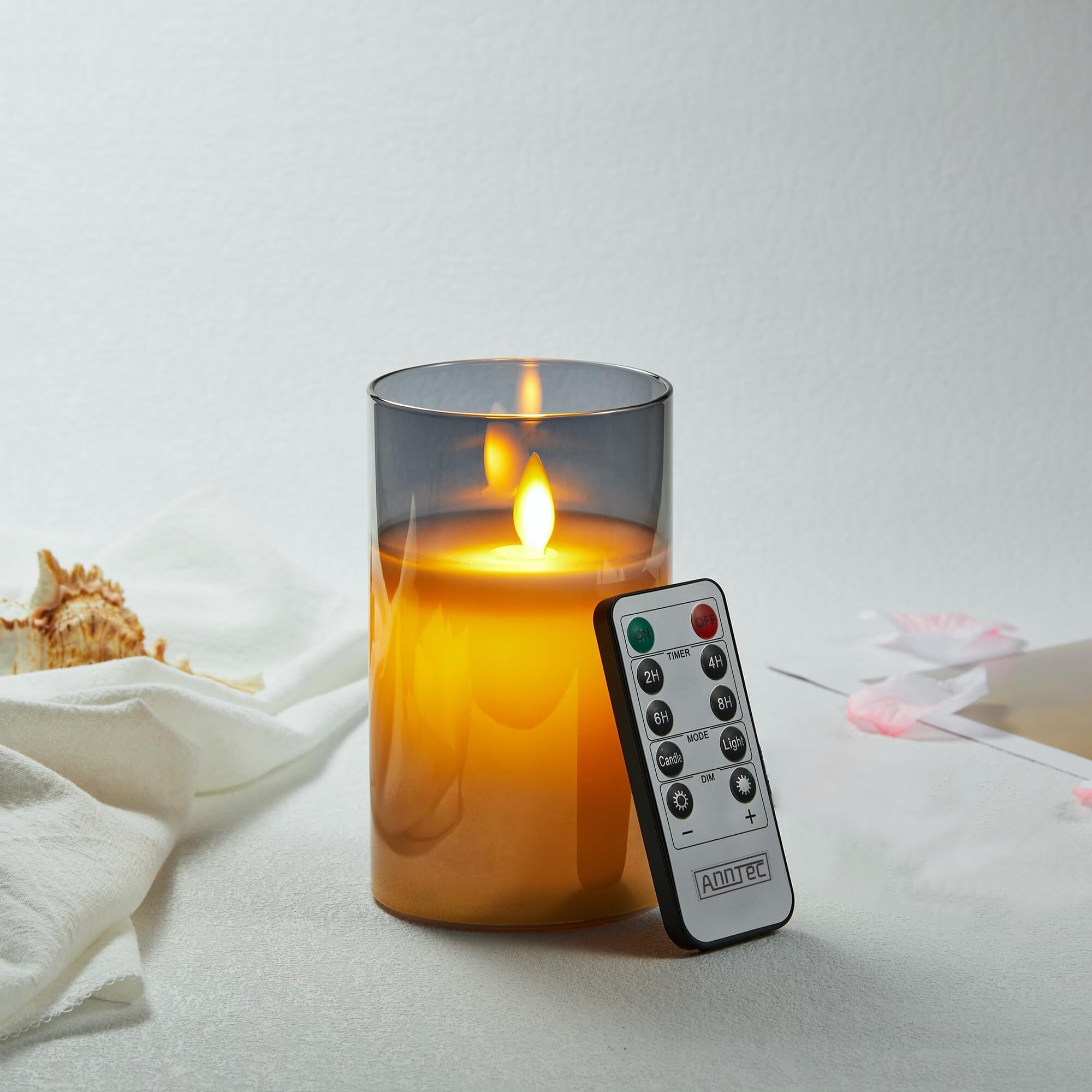【在庫セール】【2点セット】AnnTec LEDキャンドルライト ロウソク 本物の炎のようにゆらめく 暖色光 火を使わない ゆらゆら揺れる 安全 省エネ 専用リモコン付き 明るさ調整 LEDキャンドル LEDロウソク 電池式 ガラス (直径7.5cm×高さ12.5cm) (グレー) | allstore3