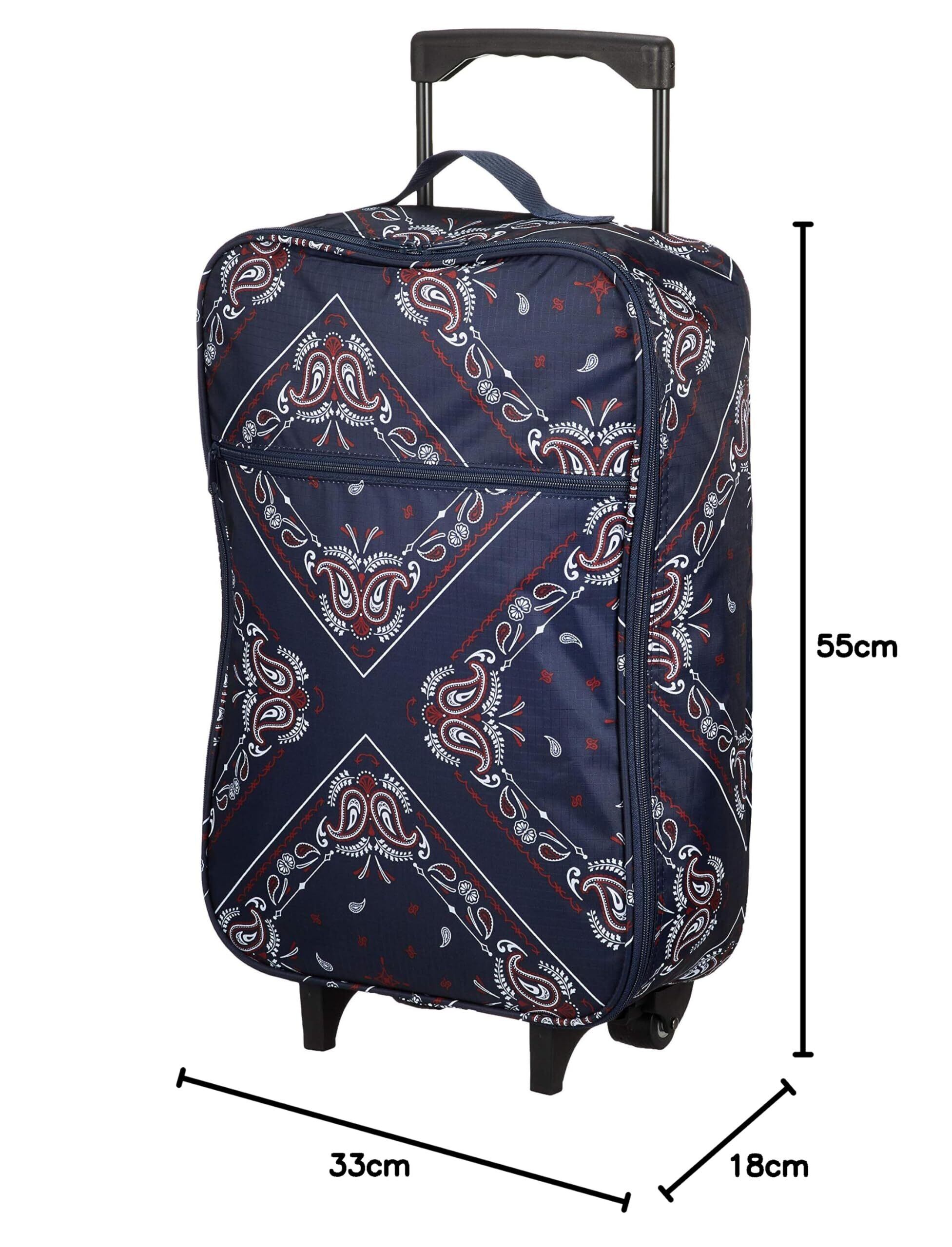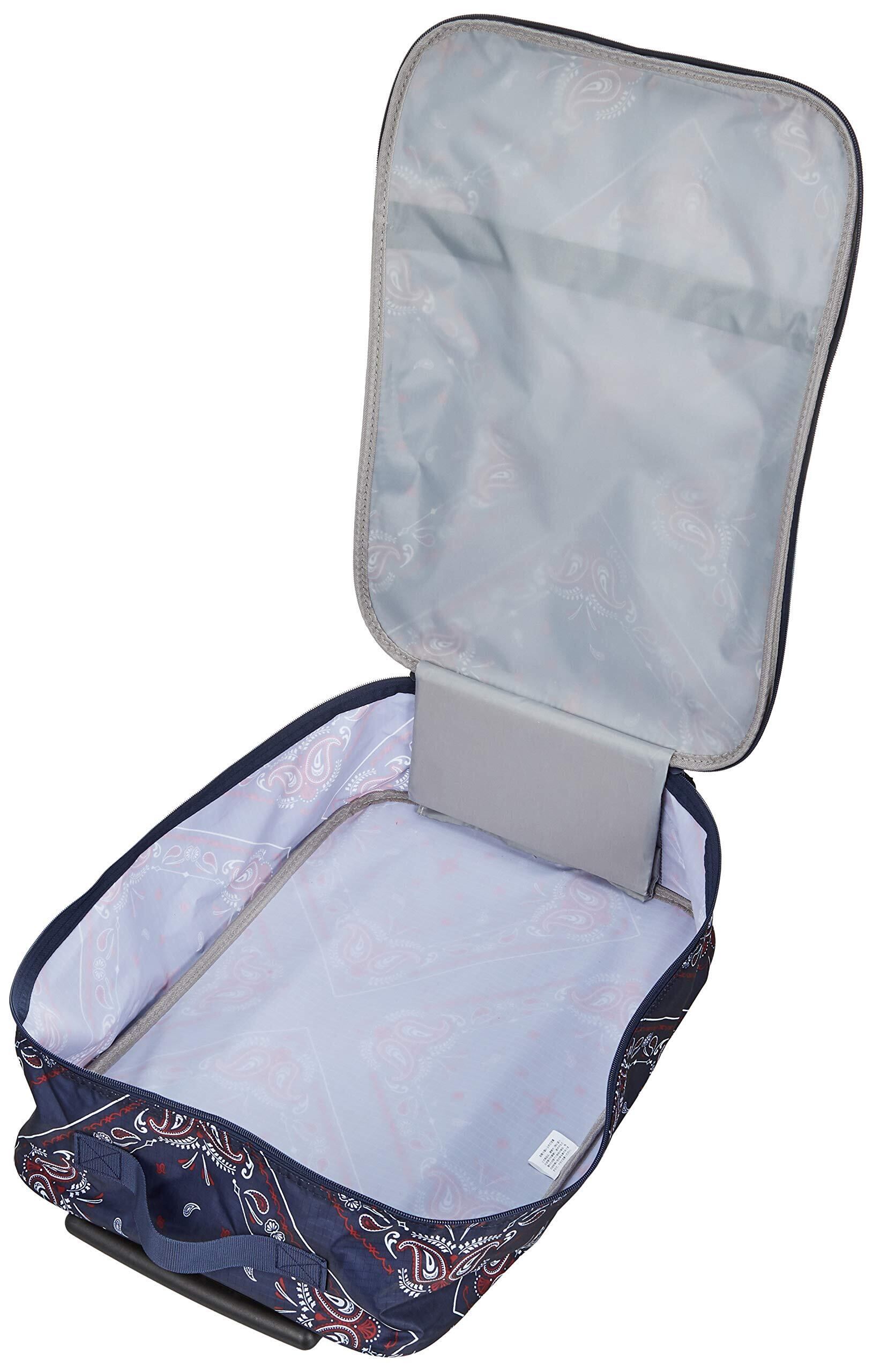 遊び心のあるプリント生地を使用したキャリーカートです。使用しない時はコンパクトに折りたたむことができるので、置き場に困ることがありません。 2輪タイプのキャスターが付いているため、荷物をたくさん入れてもスムーズに運ぶことができます。 伸縮式のキャリーバーの他にトップハンドルを配しているので、階段の昇降もラクラク。 フロントにジップポケットを備えているから、すぐに取り出したいアイテムを収納するのに便利。 国内線100席以上機内持ち込み対応サイズで、1~2泊程度の旅行におすすめ。 ショッピングなどにも活躍してくれるので、なにかと重宝しそうです。