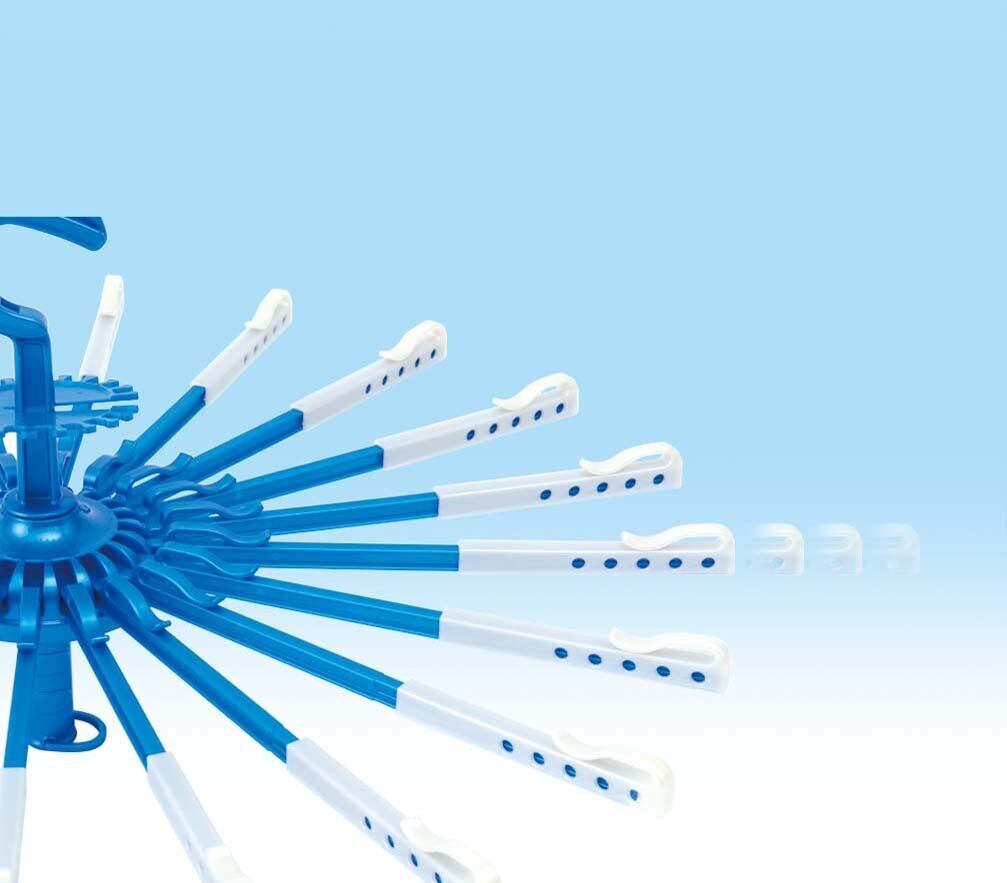 【在庫処分】オーエ ポリプロピレン 洗濯 物干し パラソルハンガー ブルー 縦31×横64×高さ64cm 20本掛け LD 伸びる 洗濯物の大きさにあわせてアームの伸縮が可能