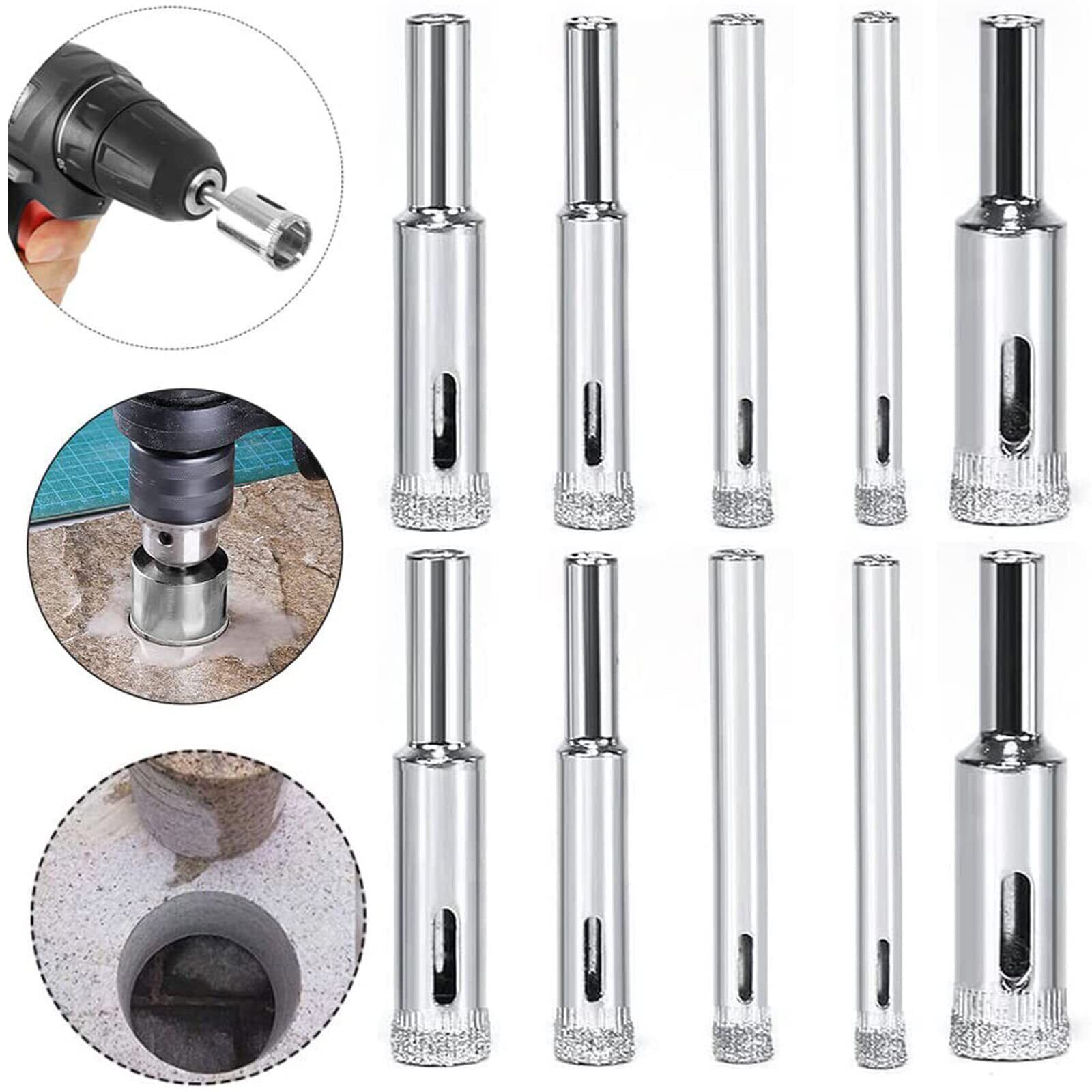 Bestgleダイヤモンドホールソードリル ホールオープナービット大理石ホールドリル ガラス タイル 穴あけ 加工 切削 研削 工具 タイル 穴あけ 超硬 10本組 5mm 6mm 8mm 10mm 12mm