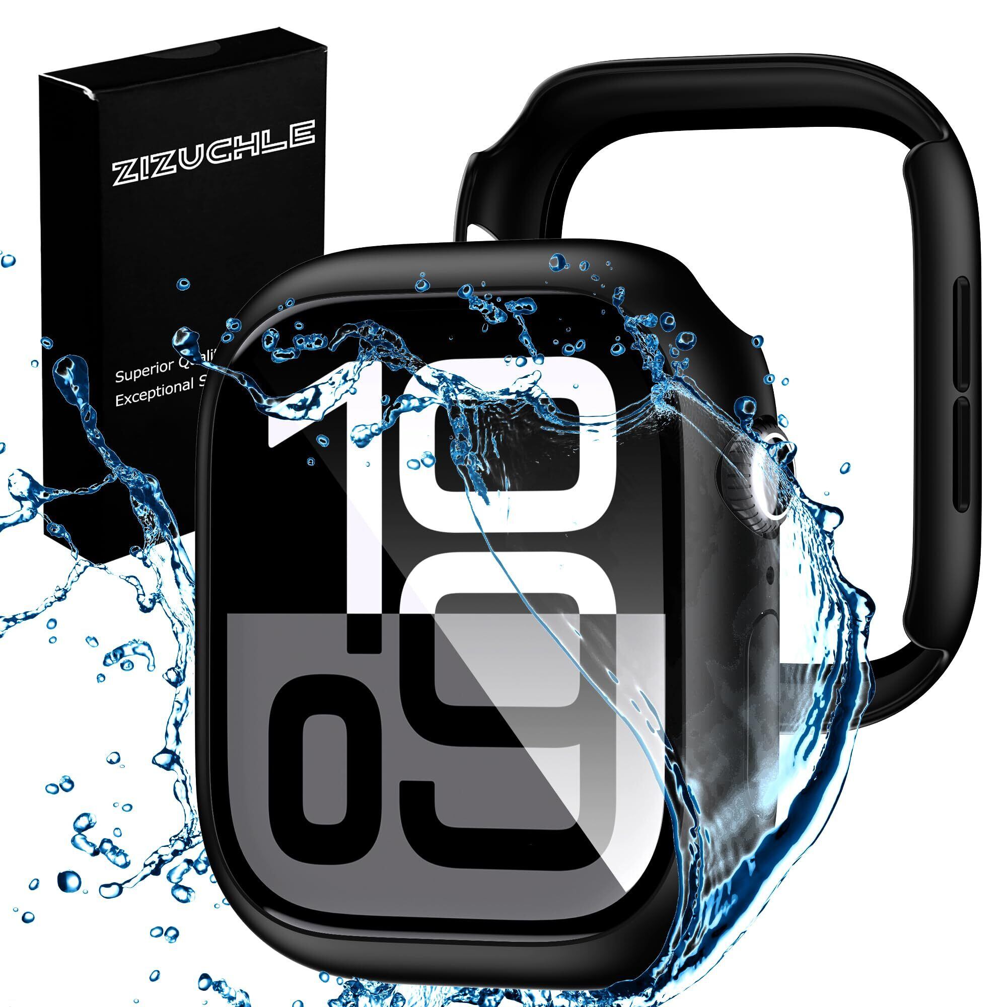 【人気商品】for Apple Watch 10/11防水ケース 46mm アップルウォッチ 10/11防水カバー 液晶フィルム 一体型 Apple Watch Series 10/11対応 PC素材 耐衝撃 全面保護 超薄型 装着簡単 高透過率 指紋防止 傷防止 アップルウォッチ 10/11アクセサリー(ブラック,46mm)