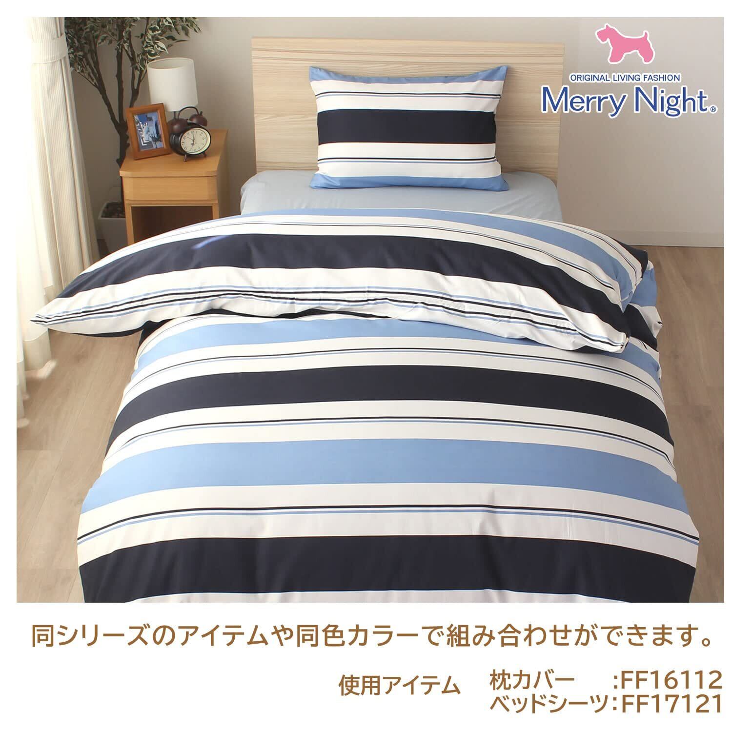 【特価商品】メリーナイト(Merry Night) 掛け布団カバー 「ダブルボーダー」 ネイビー シングルロング 約150×210cm 両サイドファスナー ふとんが入れやすい 洗える 速乾 シワになりにくい FF12112-72
