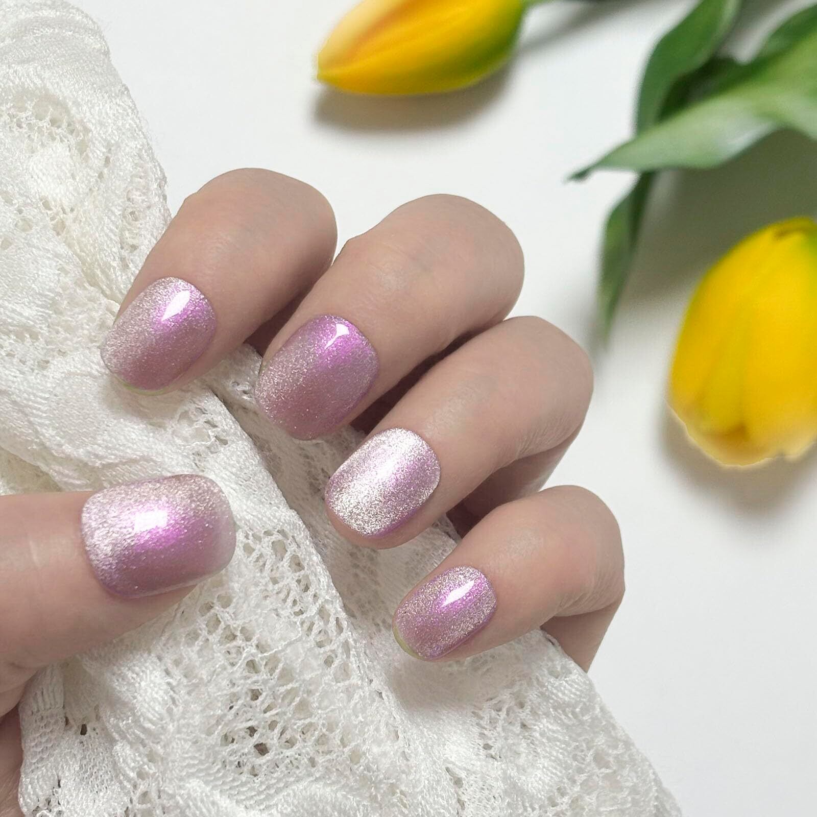 「【新着商品】ネイルチップ 手作りネイルチップ」は、あなたの指先を華やかに演出するために特別にデザインされたプレスオンネイルです!キャッツアイ効果を持つパステルパープルのカラーが、日常のスタイルにぴったりのアイテムです。