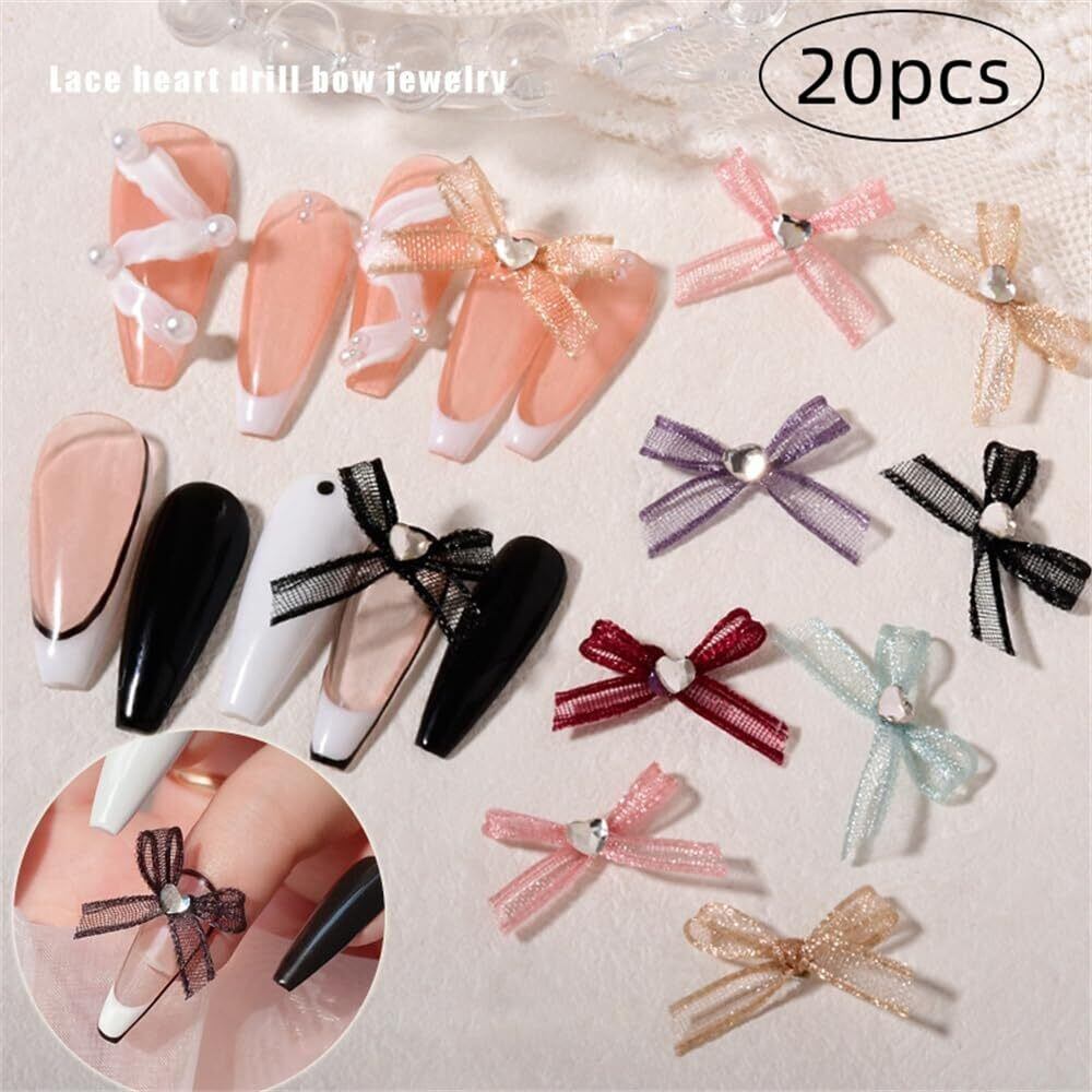 ネイルパーツ リボン ハート 蝶結び ネイルデコパーツ 立体 3D ネイルアート メタルパーツ ジュエリーパーツ 人気 ネイルデザイン おしゃれ アクセサリーパーツ (レースリボン20個)