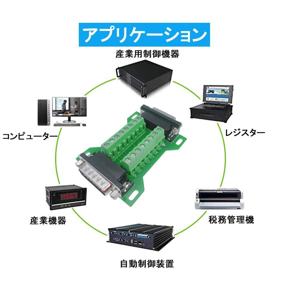 【フレキシビリティ】端子台は、コネクタにワイヤーをハンダ付けするよりも簡単です。RS232インターフェイスを持つあらゆる機器のピンアウト、ケーブル、テスト目的に使用することができます。
