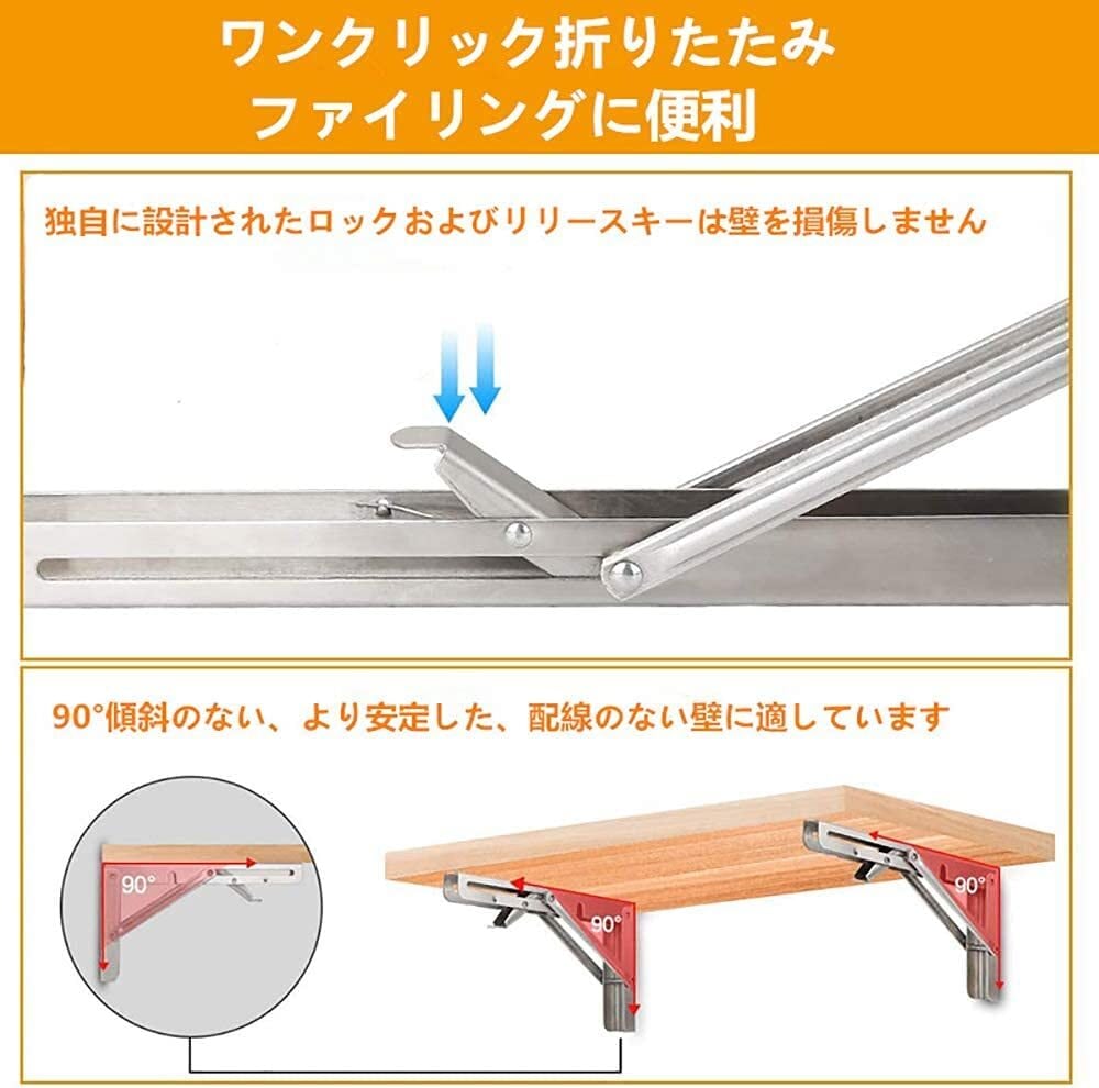 【特価セール】棚受け 金具 L字型 棚支え 折りたたみ ステンレス 鋼ブラケット アクセサリー 壁掛け 吊り棚金具 ,省スペースのDIY折りたたみテーブル アクセサリー,取付ねじ付き2本セット (30cm) | allstore3