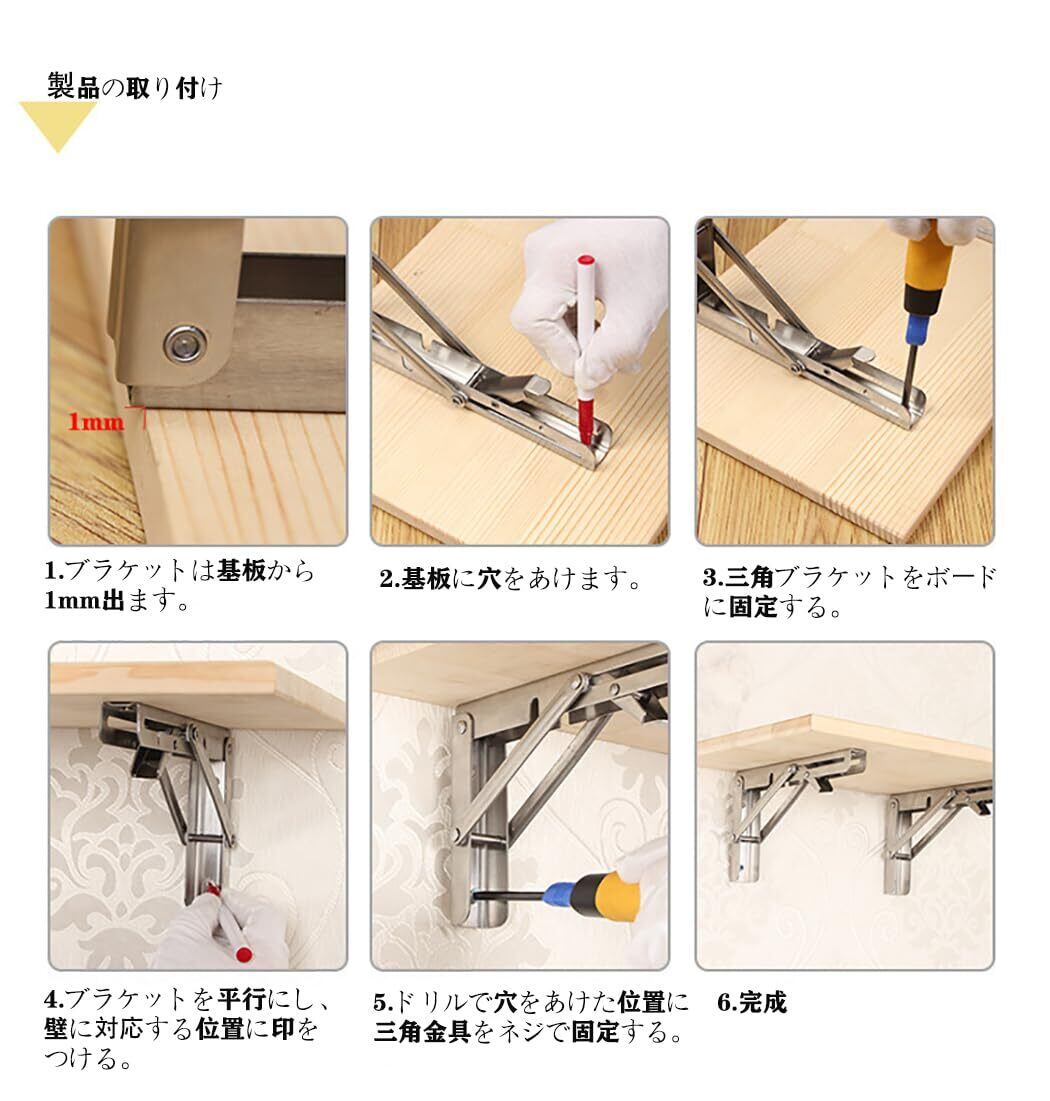 棚受け 金具 L字型 棚支え 折りたたみ ステンレス 鋼ブラケット アクセサリー 壁掛け 吊り棚金具 ,省スペースのDIY折りたたみテーブル アクセサリー,取付ねじ付き2本セット (30cm)