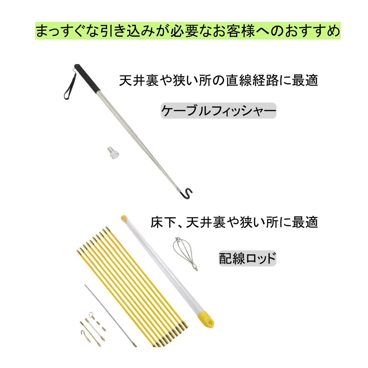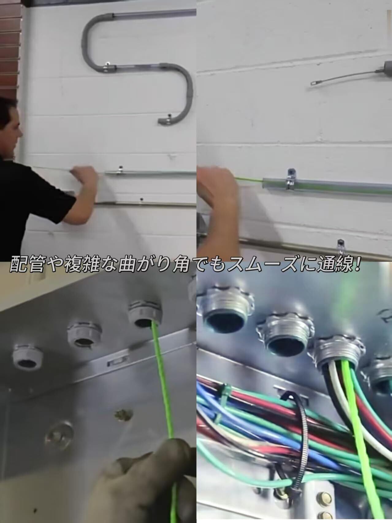 【用途】追加配線に最適、配管や複雑な曲がり角でもスムーズに通線!広い空間での直線引きには不向き。