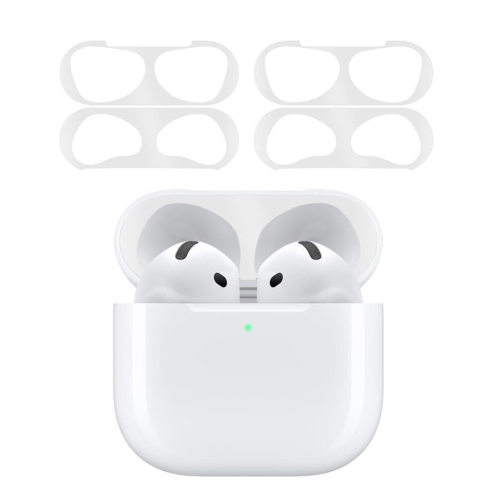 【在庫セール】【2024強化版】ILYAML for AirPods 4 ダストガード エアーポッズ 4用 ガードカバー 故障防止 吸着 ほこり ゴミ 金属製 侵入防止 防塵 粉塵防止 ホワイト 4枚(2セット)