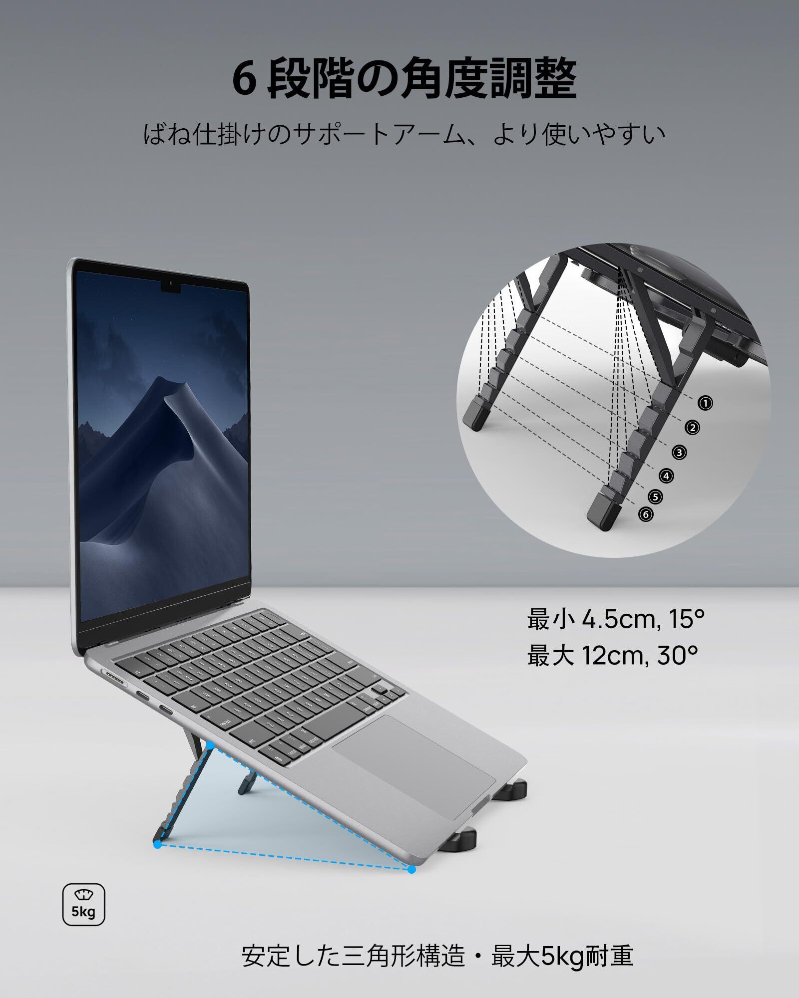 - 【安定感抜群|頑丈なデザイン】 しっかりとした構造で、最大16インチのノートパソコンでも安定的に支えます!安心してお使いいただけます!