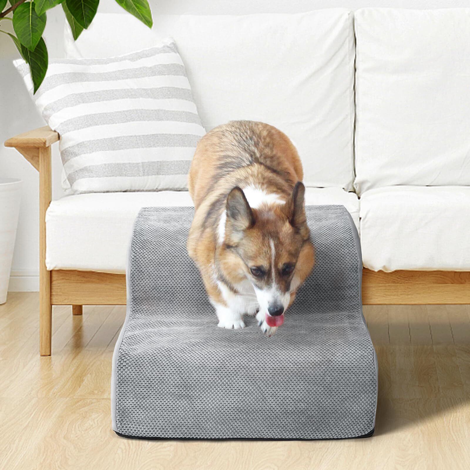 犬用ステップ 2段 ドッグステップ 犬用スロープ 犬用踏み台 犬用階段 小型犬 室内犬 高齢犬 滑り止めマット付き カバー取り外し 洗える 手持ち付き(グレー)
