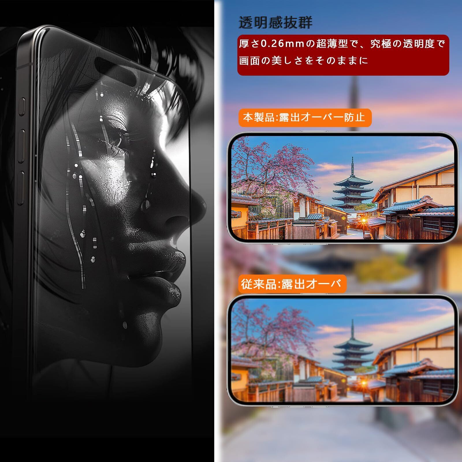 - 【高透過率|クリアな視界】 高透過率を実現しており、元の美しい画面をそのままお楽しみいただけます。色彩の鮮やかさを損なうことはありません!