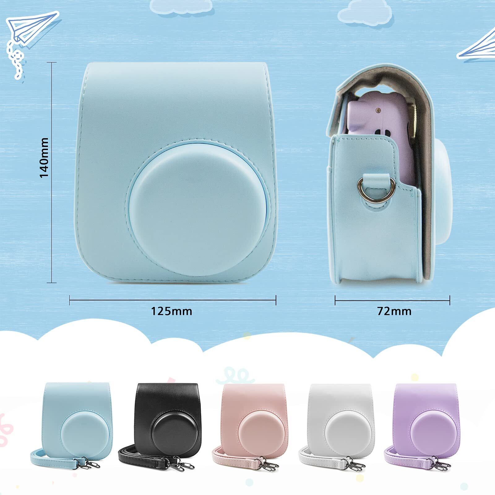 kinokoo チェキケース,fujiチェキinstax mini11/MINI8/mini8+/mini9ケース instax mini11/mini 9/mini8/mini8+カメラケース チェキ保護バッグショルダーストラップ付き(ブルー)