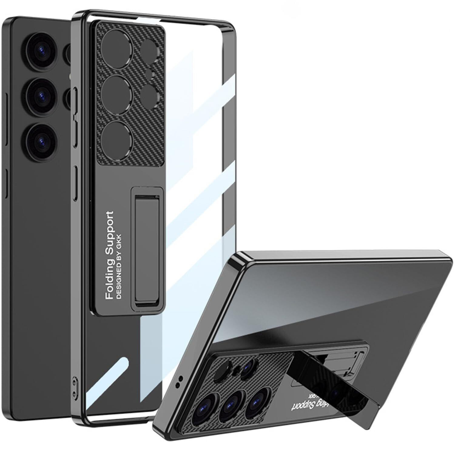【在庫処分】【NINKI】適応Galaxy S25 Ultra カバー 「SC-52F / SCG32」背面クリア キックスタンド機能 超薄型 頑丈PC 耐衝撃 指紋防止 衝撃吸収 ワイヤレス充電 手触り良き シンプル ぎゃらくしー s25 ウルトラ ケース(ブラック)