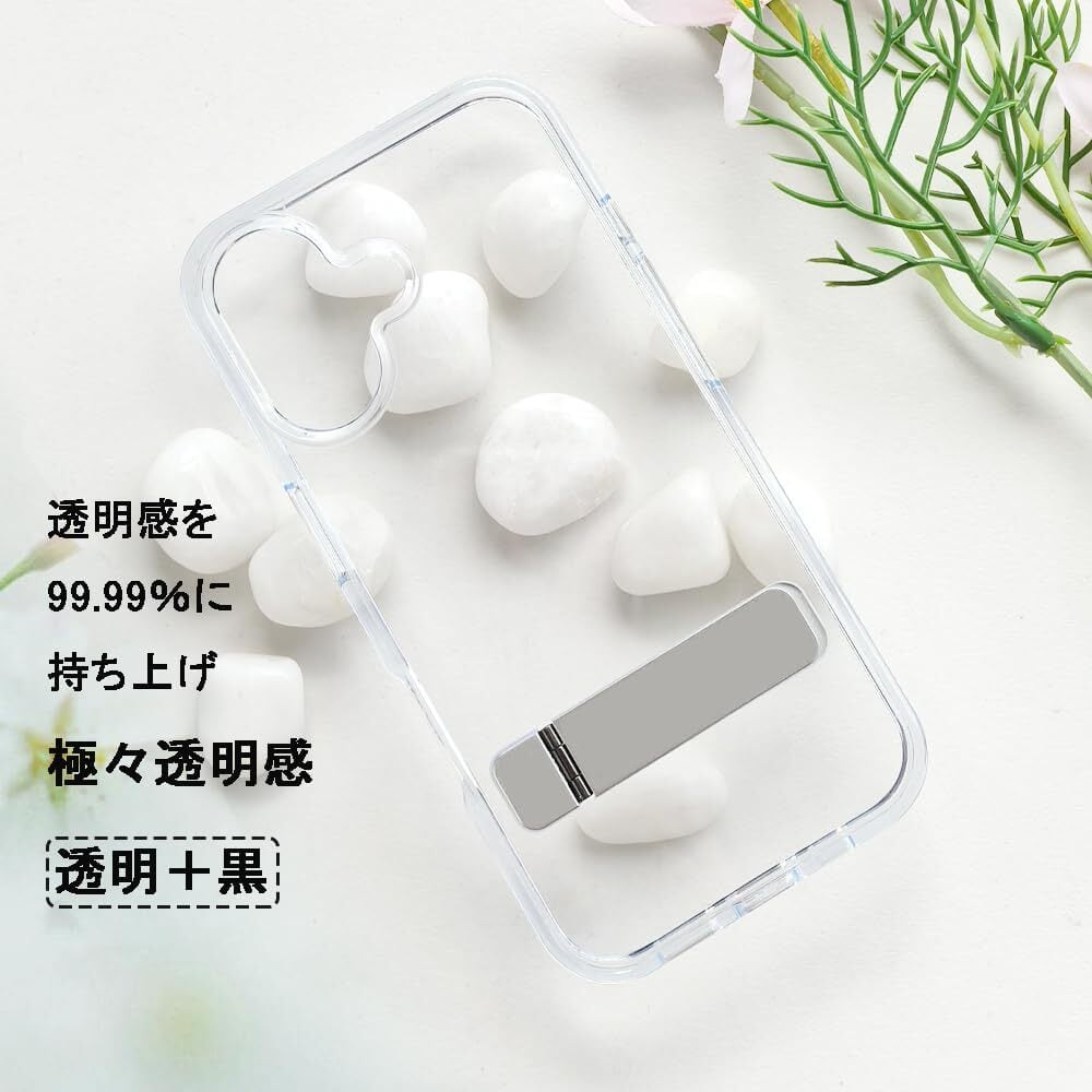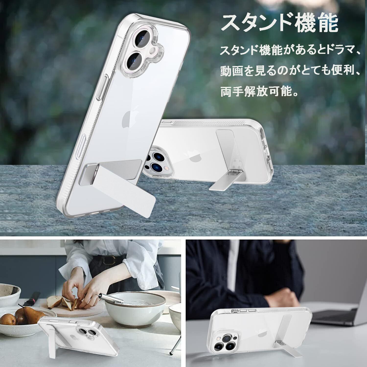 【極限透明感・機能スタンド】スマホケース 対応 iPhone16 クリア ケース スタンド機能 (メタルキック 3wayスタンドモード) 衝撃吸収 黄変防止/擦り傷防止 耐久性 薄型 軽量 スマホケース アイフォン16 対応 カバー (クリア)