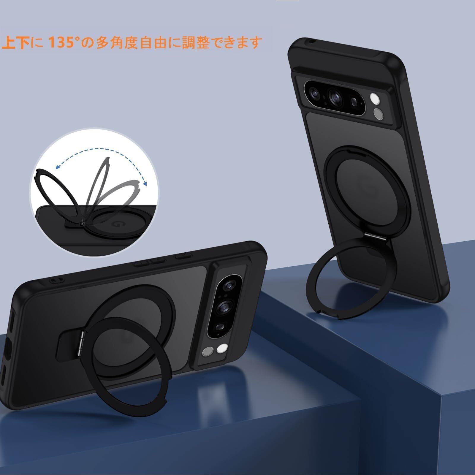 【多用途・磁気スタンド機能】135°開閉可能リングホルダーが付き、片手でスマホを操作でき、落下や滑りなどのことを防げます。超世代的な隠しスタンドと強力なマグネットリングの強力な結合により、高い吸着力でガッチリと固定しながら充電ができます。 縦置きでも横置きでも安定して支えられ、多角度自由に調整できます。