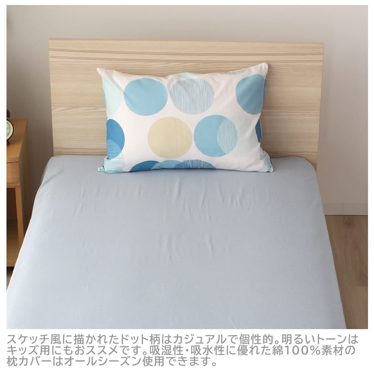 メリーナイト(Merry Night) 枕カバー 「ドット」 グリーン 約43×63cm ファスナー式 まくらが入れやすい 綿100% 心地よい肌触り オールシーズン 洗える FF16118-53