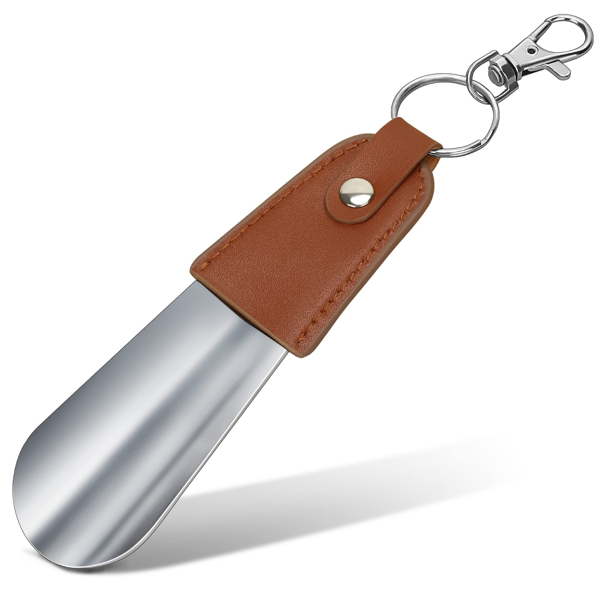 [ZOMAKE] 靴べら キーホルダー付き ミニ PUハンドル シューホーン ステンレス製 おしゃれ 短い 耐用 コンパクト 携帯用 男性、女性、子供、高齢者用