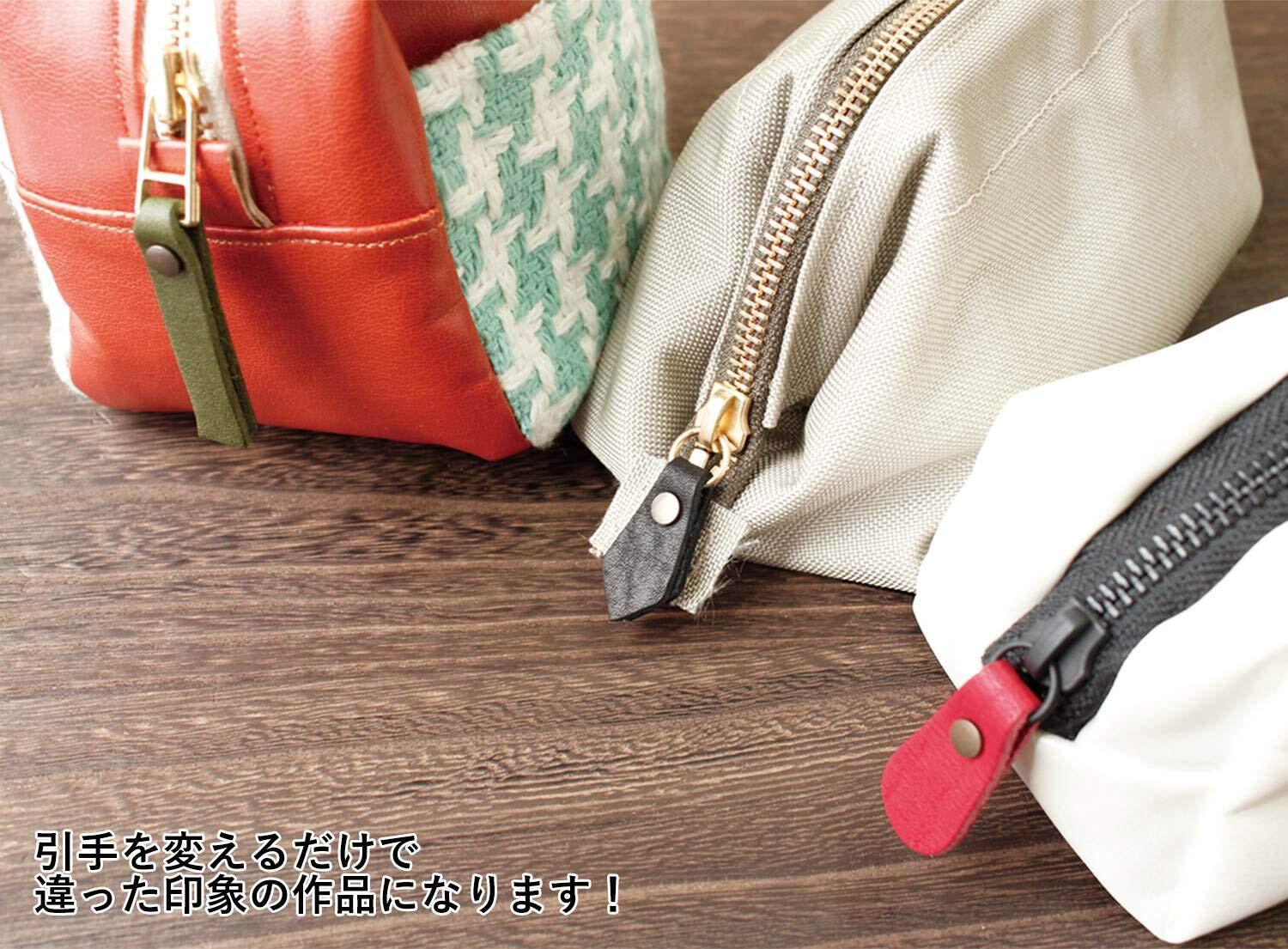 簡単に取り付けられる本革のファスナーパーツ。 持っているポーチや財布の引手のアレンジや、お直しにもおすすめ!