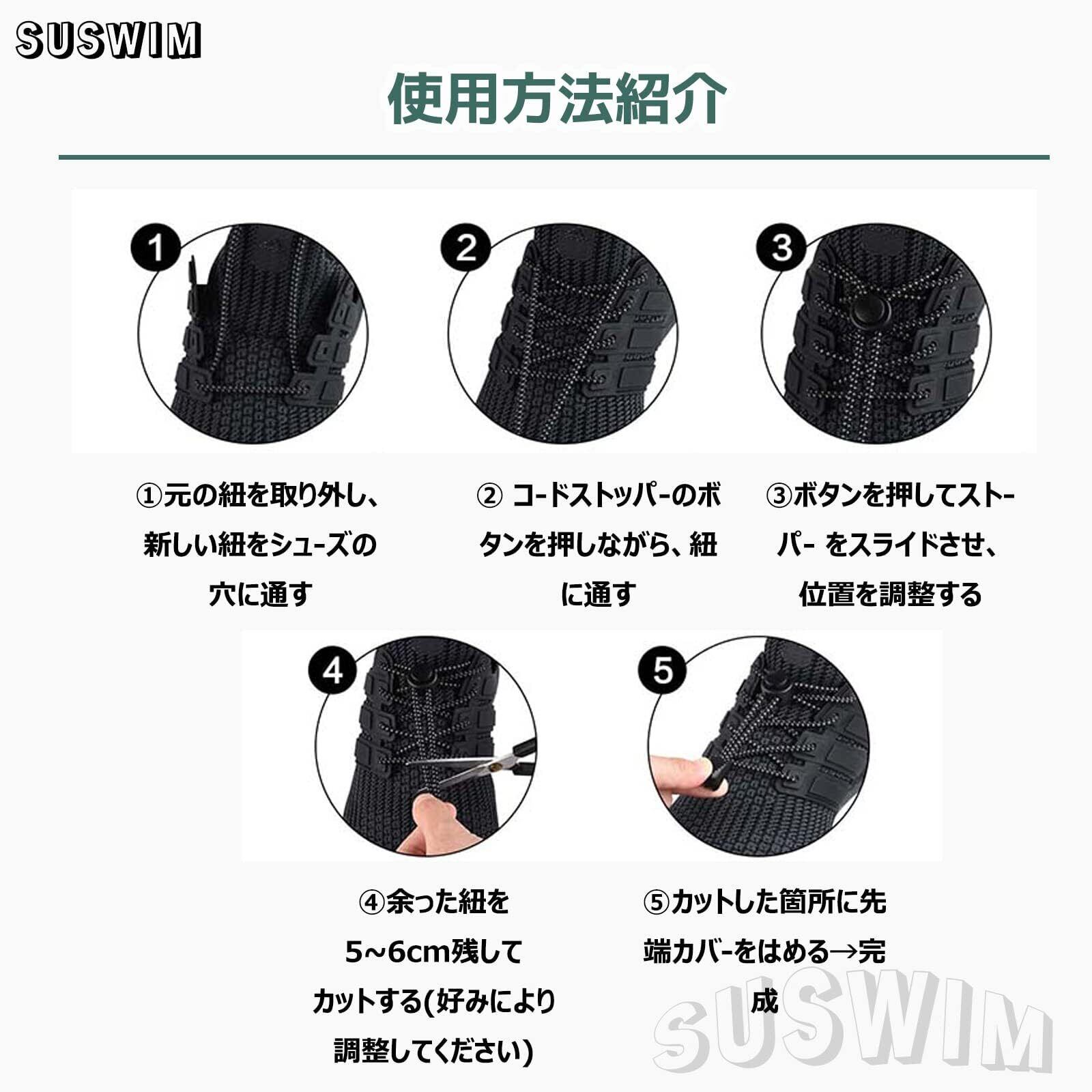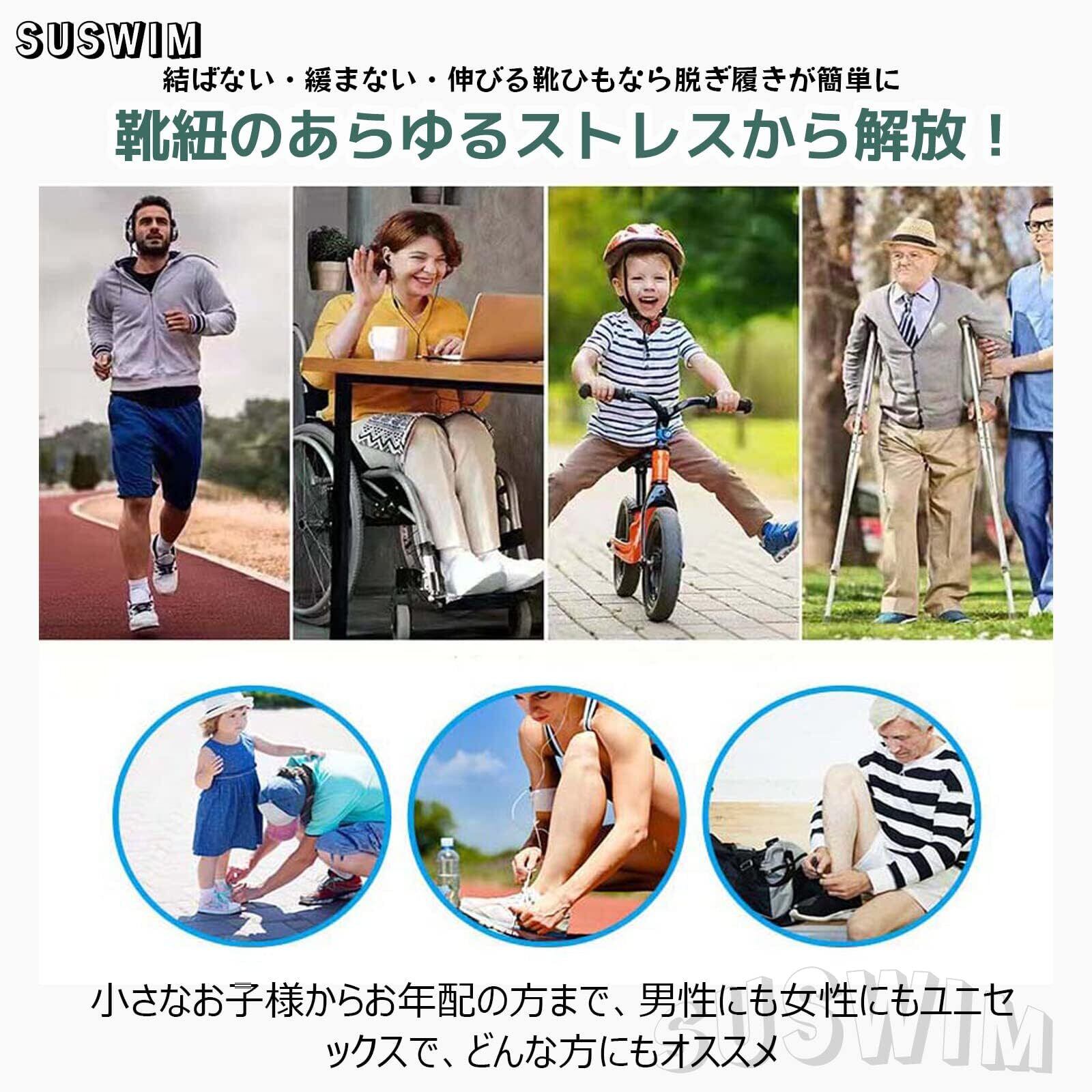 [SUSWIM] 二足セット(四本) 結ばない靴ひも,靴の着脱を簡単に レースロック 伸縮するワンタッチゴム靴紐 お子様、大人、ご高齢者、アスリート、靴紐を結ぶのが苦手な方