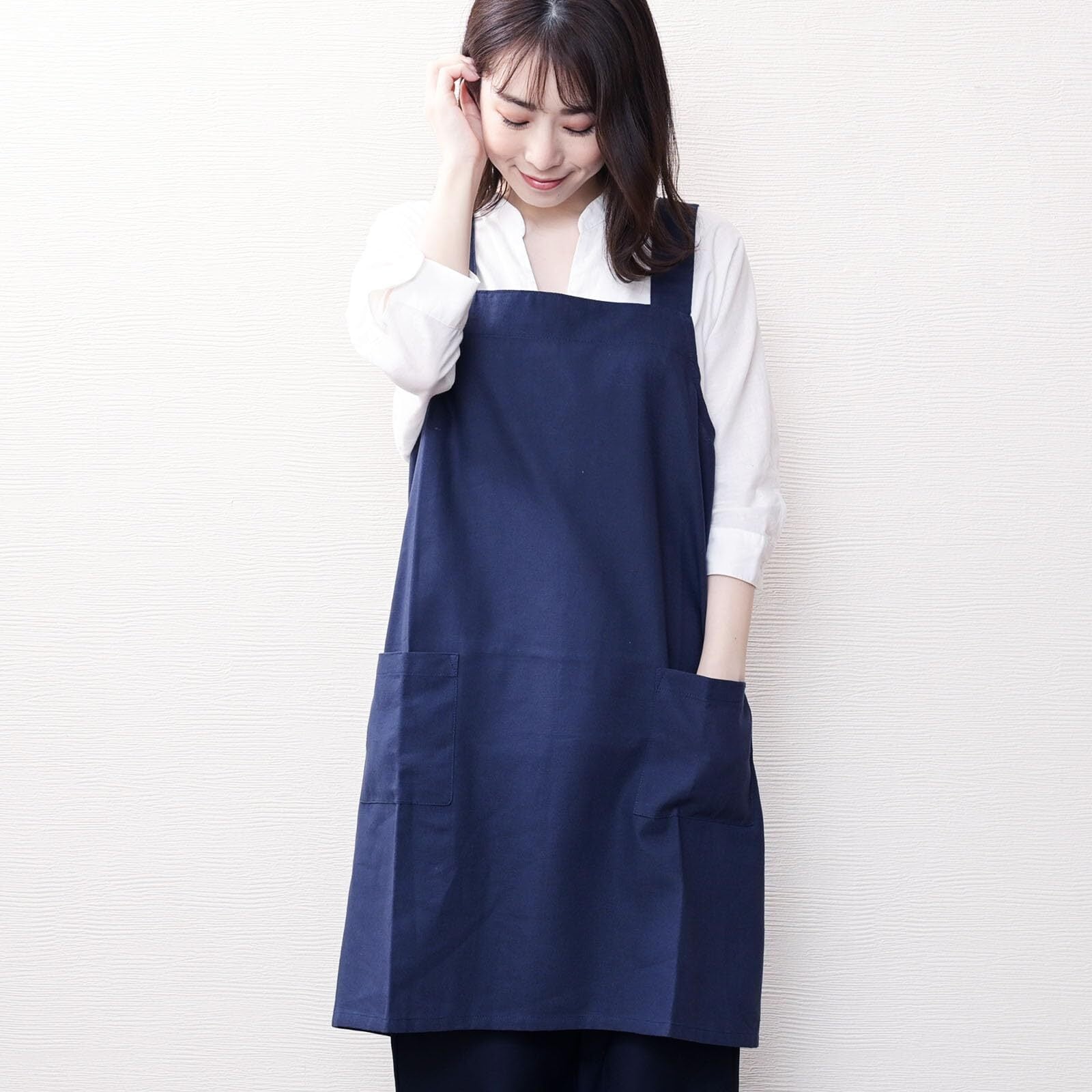[レップ] エプロン かぶるだけの簡単着脱 北欧 ポケット2個付き 無地 おしゃれ 着丈73cm (アビチュアル ソル バッククロス) ネイビー NV 554425-MAIL プレゼント