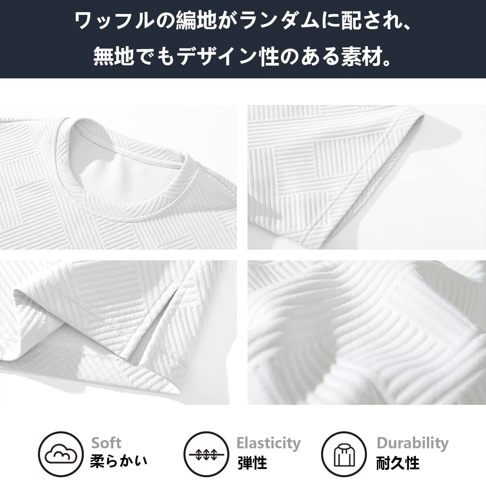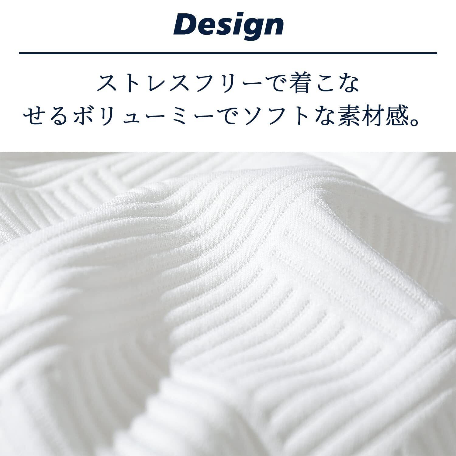 【素材】オリジナルで作成したもこもこの大きめワッフル生地が人気のシリーズ。糸を膨らませて格子状に凹凸を出した柔らかな表面感により上質なタオルのような優しい肌触りを形成。伸縮性も高くストレスフリーかつリラクシングな着心地が魅力です。