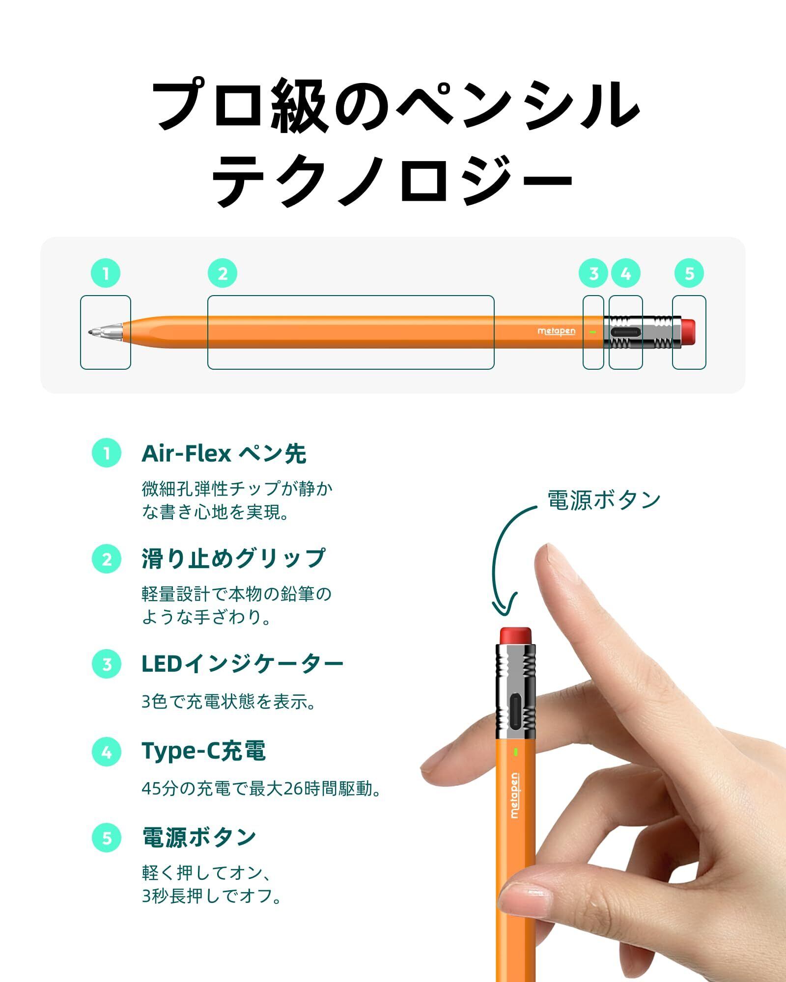 【新着商品】Metapen Air 8 Pro X ipad ペンシル タッチペン アップルペンシル代用ペン iPad 2018~2025年のモデルに対応 Type-C急速充電 誤作動防止 Bluetooth不要 書き心地滑らか 鉛筆 iPad Pro 11インチ1/2/3/4&M4 iPad Pro 12.9 インチ3/4/5/6 iPad Mini5/6などに対応 | allstore3