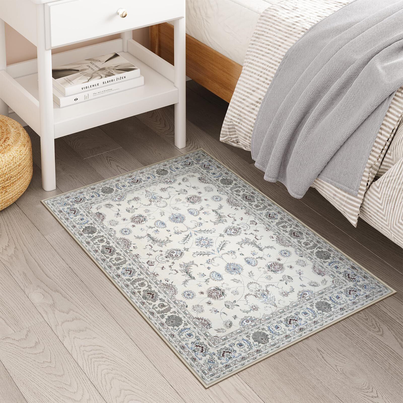 HAOCOO 玄関マット ペルシャ絨毯風 室内 50х80cm 小さい ラグ おしゃれ 洗える 耐磨耗性 滑り止め 防音 ラグマット 屋外 泥落とし シェニール オールシーズン適用 抗菌防臭 軽量 アイボリー