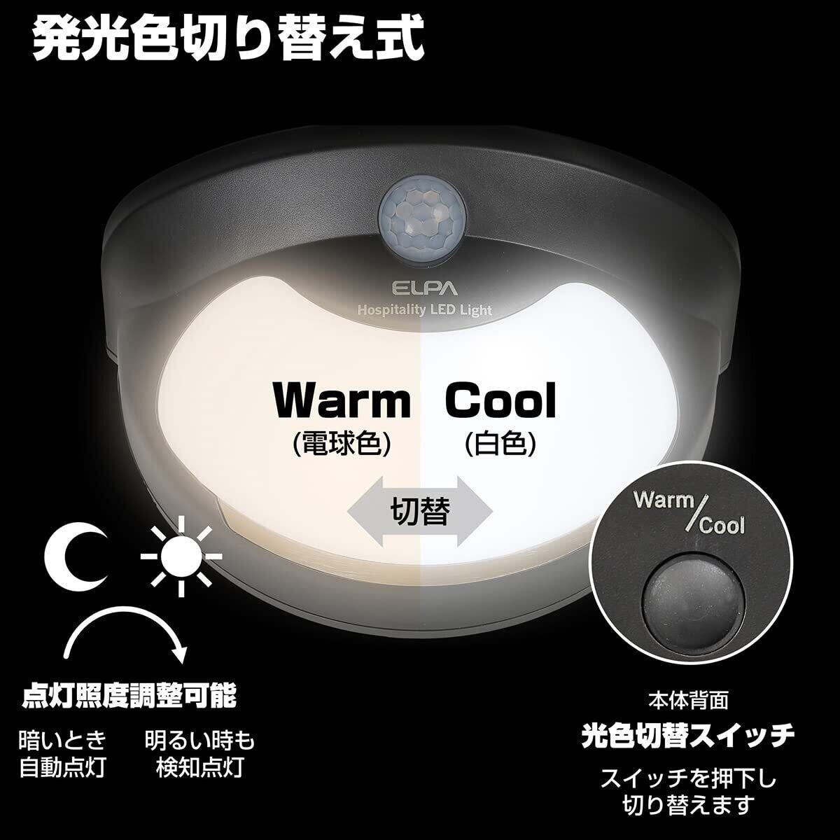 【新着商品】エルパ (ELPA) もてなしライト (扉ひっかけ形/電球色・白色/電池式) 人感センサー/ライト/室外 防沫型 (HLH-2206)