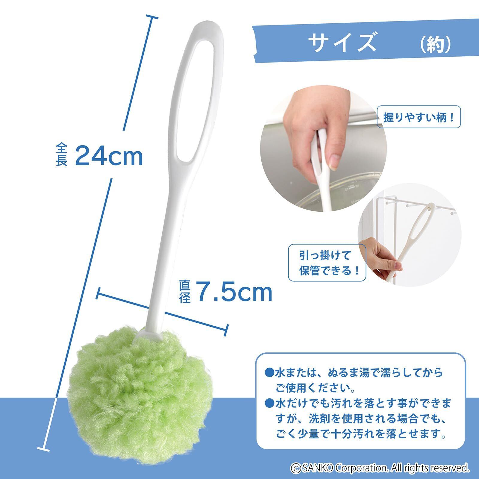 サンコー ボトル洗い びっくりフレッシュ ピカピカコップ洗い 水だけでも汚れが落とせる特殊繊維 全長24cm グリーン 日本製 BL-40