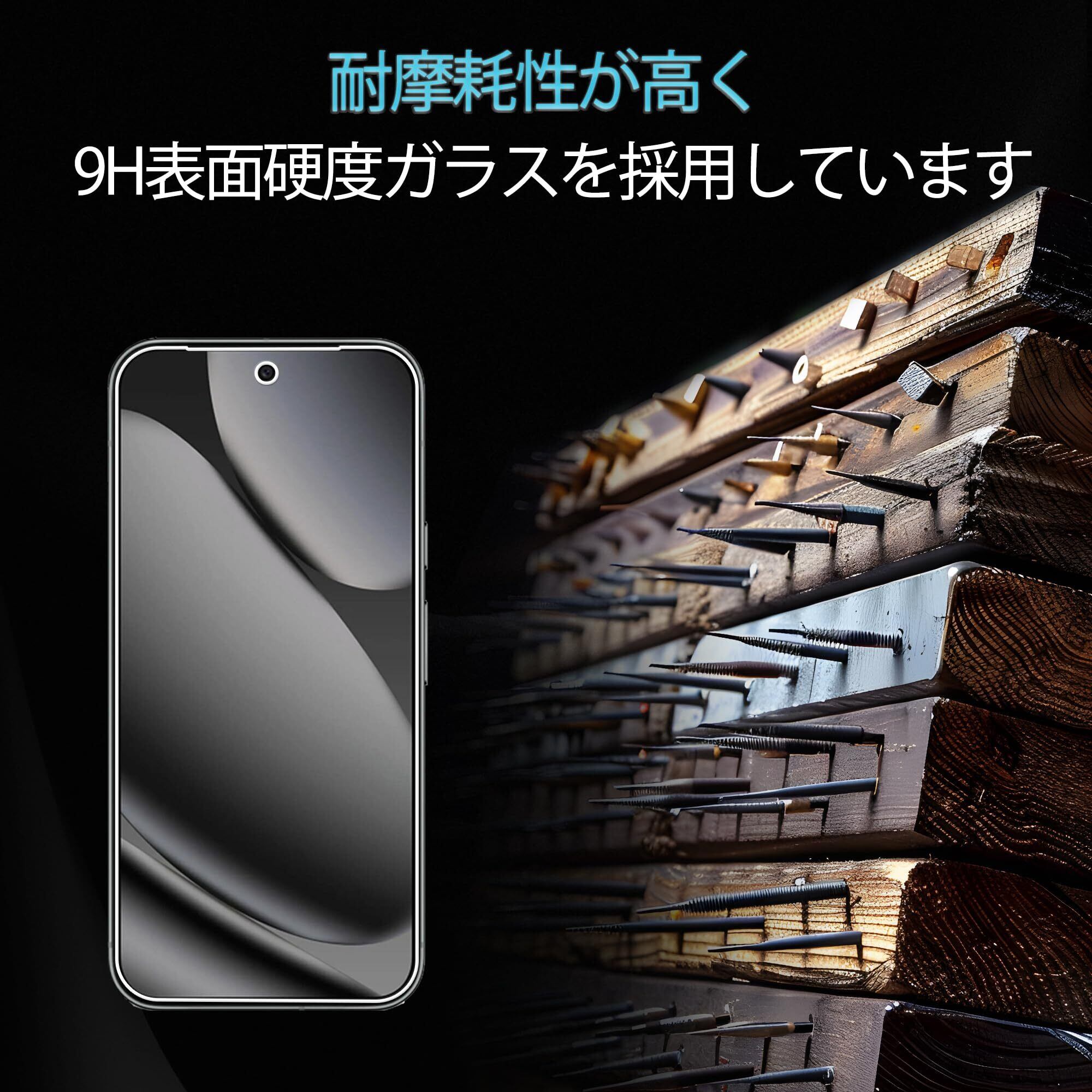 【9H硬度・日本製ガラス素材】Pixel 10 Pro 保護フィルム 日本旭硝子製ガラス素材採用 最上級強度のガラスを使用し表面硬度は9H。万が一スマホを落としてガラスが割れても、 ガラス破片が飛び散らないような安心設計。 飛散防止 、ガラス破片から守ります。