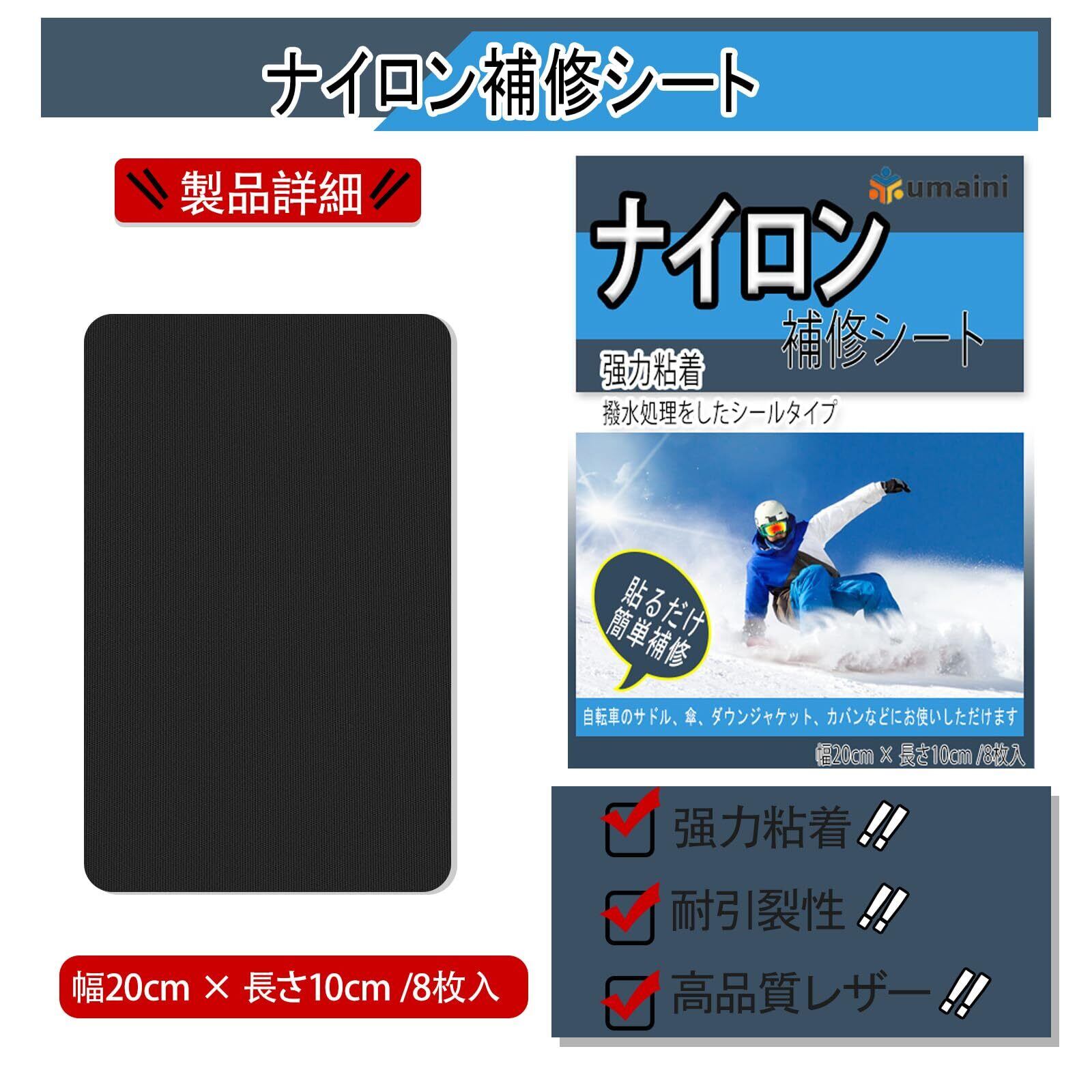 【新着商品】ナイロン補修シート 20x10cm 8枚 テント補修テープ バイク シート 補修 粘着ナイロン織物テープアウトドアキャンプ装備 傘、ダウンジャケット、寝袋、リュックパッチキット ブラック | allstore3