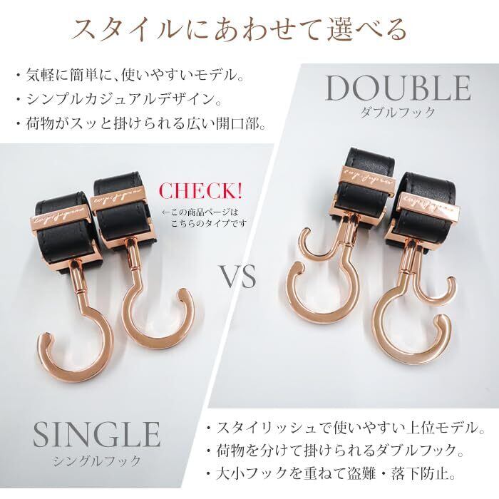 e.x.p.japon PP バギーシングルフック マットBK-合皮ブラック 360度回転 バギーフック シングル ベビーカー 荷物フック 耐荷重約60キロ ベビーカーフック 2本入り Sbgh09mbk