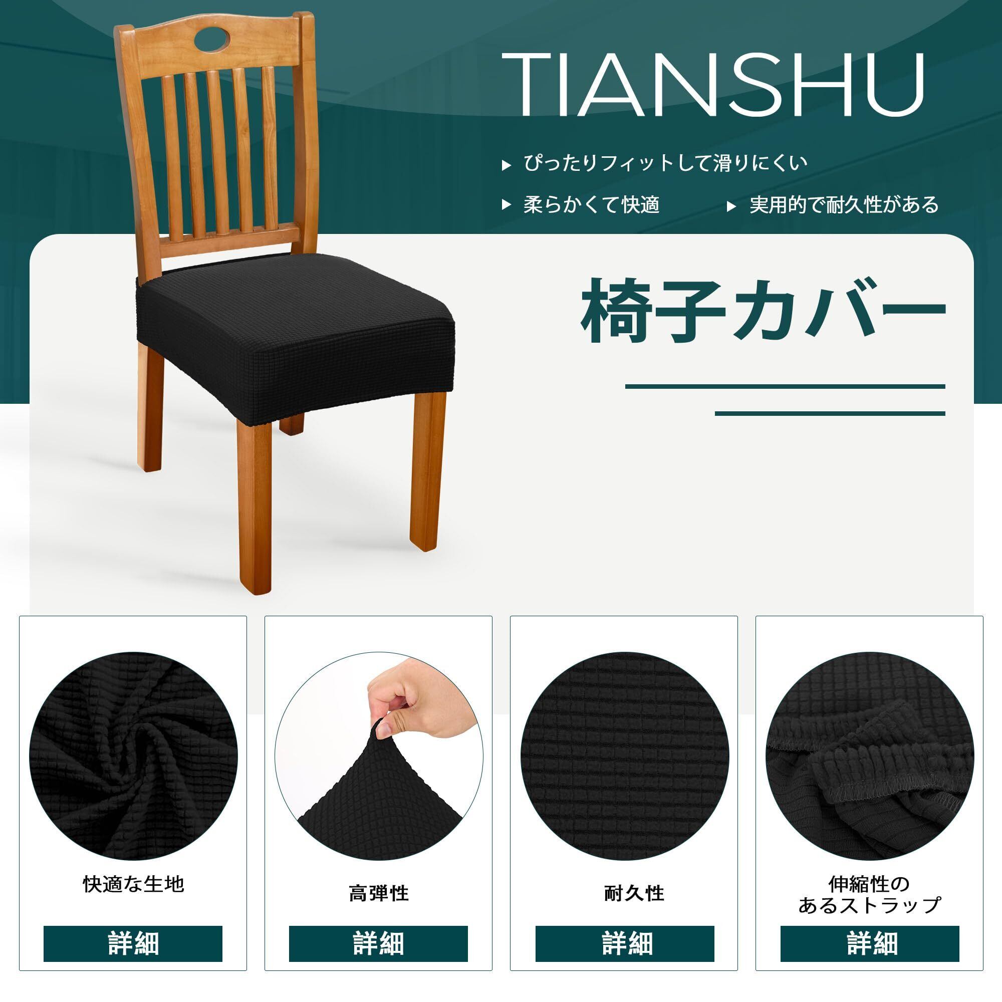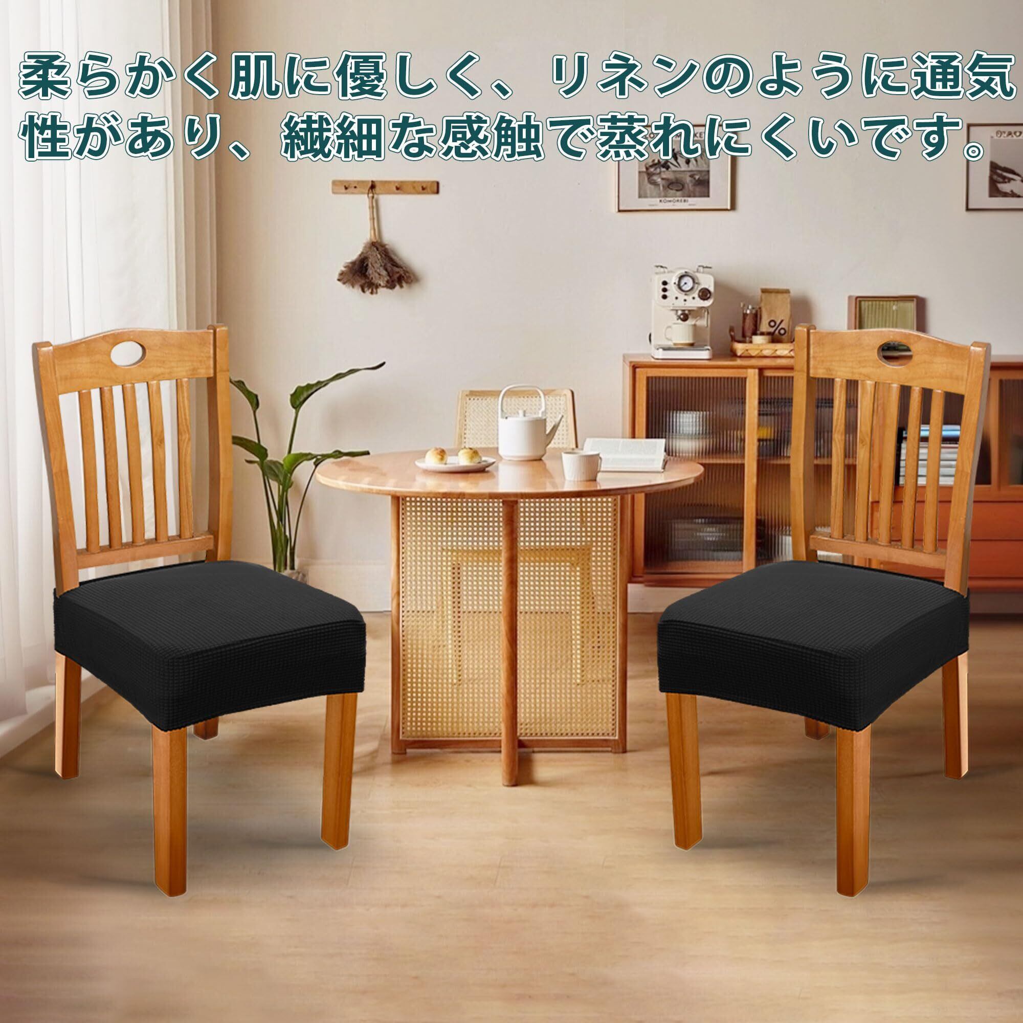 TIANSHU 椅子カバー 座面のみ 2枚 椅子座面カバー 選べる 11色 張り替え用 伸縮素材 ストレッチ ふわふわ 家庭・レストラン・ホテル・オフィス用 ウェディング・結婚式・パーティーなど対応 簡単着脱 洗える(2枚, ブラック)