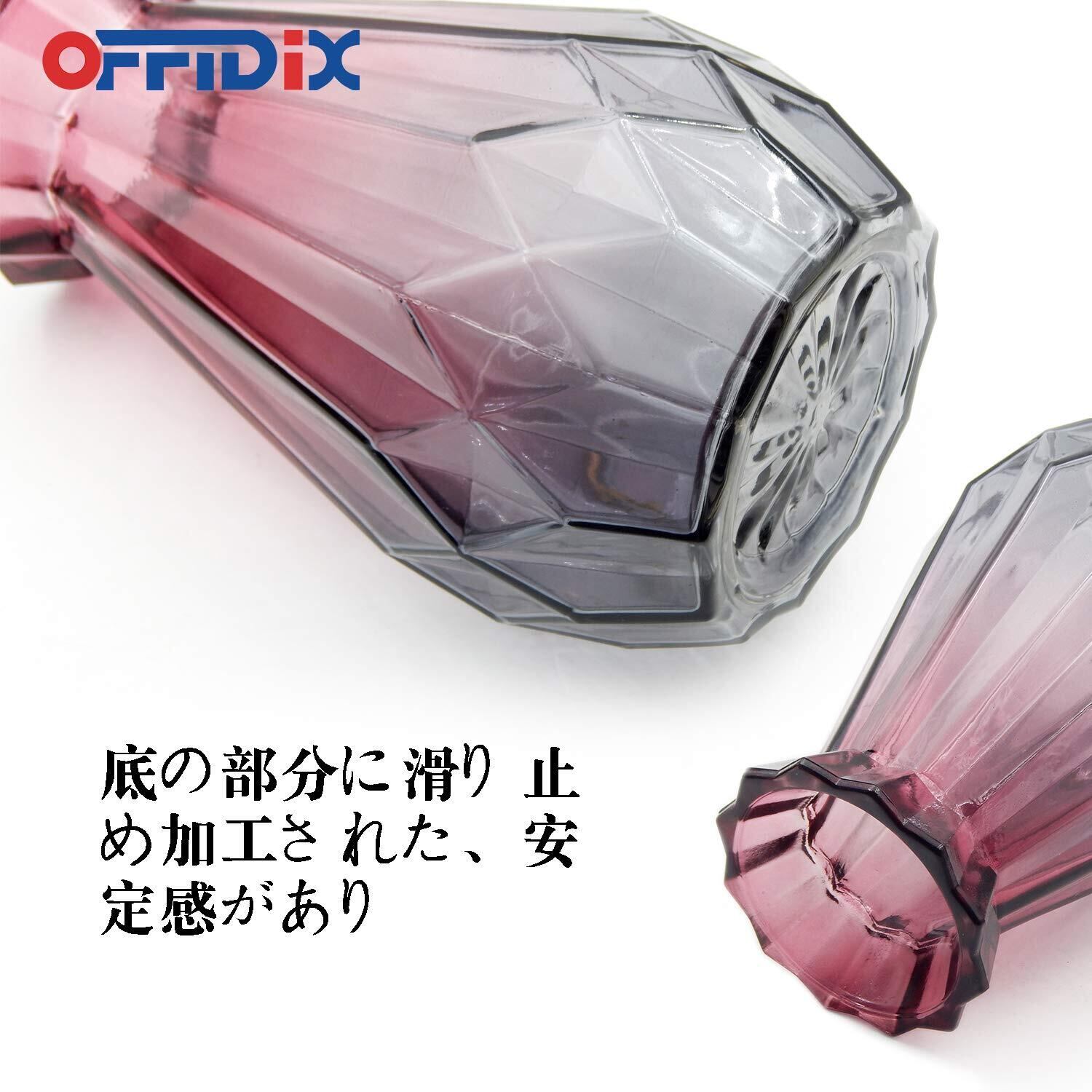 OFFIDIX 花瓶 ガラス製 フラワーベース おしゃれ 花器 水耕栽培 インテリア飾り パープルとグレー