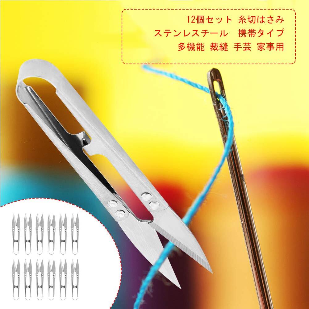 12個セット 糸切はさみ 縫製はさみ 糸はさみ 裁縫 手芸 家事用 ステンレスチール シルバートーン 携帯タイプ 多機能