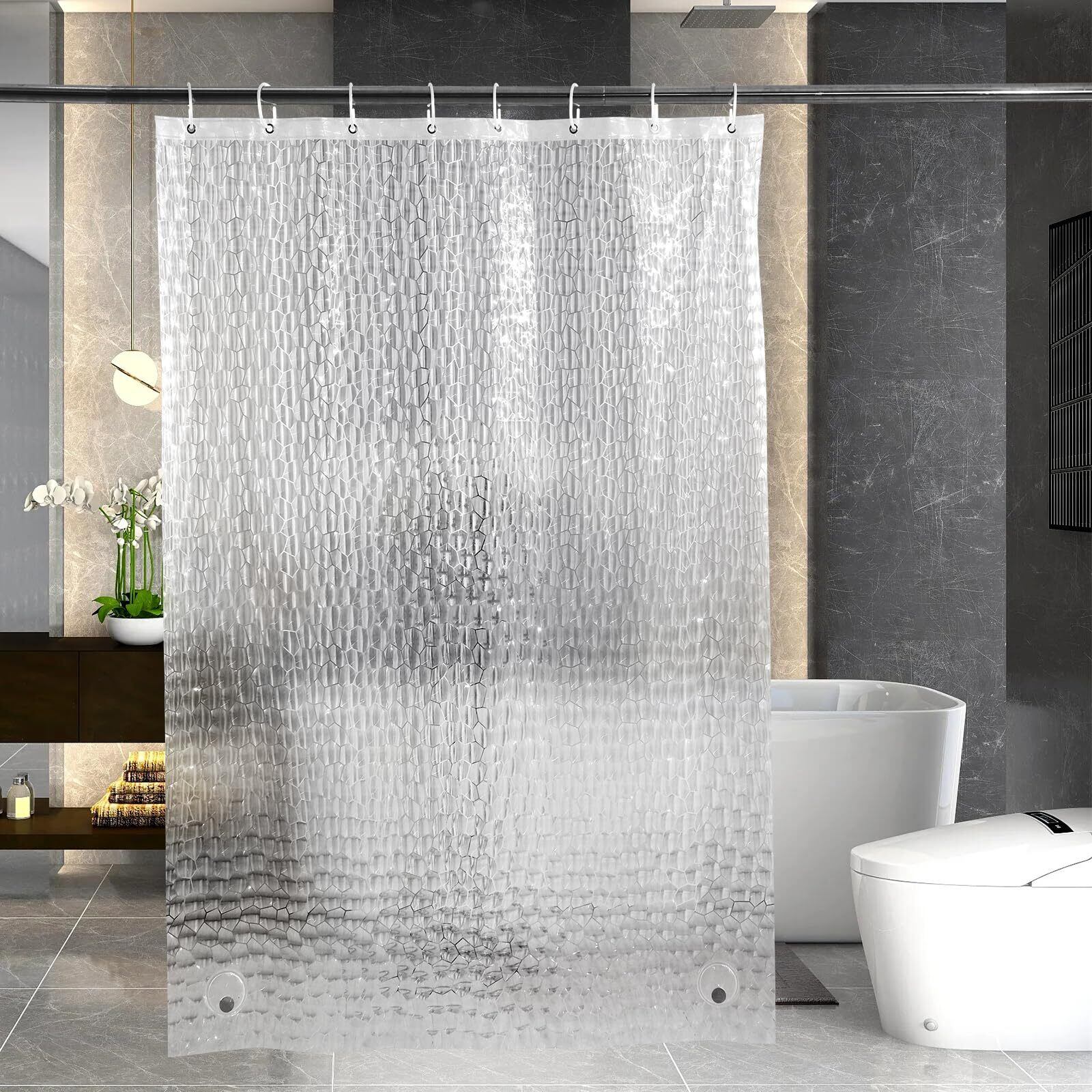 OTraki シャワーカーテン 半透明 幅120cm 丈180cm お風呂カーテン 3Dウオーターキューブ立体加工 プライバシー保護 目隠し 浴室カーテン EVA素材 防カビ 防水 リング付属 Shower curtain 取付簡単 間仕切り ホテル バス用品 120x180cm