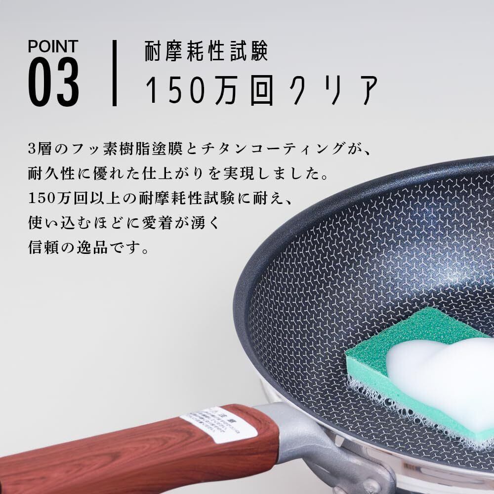 ふっ素樹脂塗膜加工3層+チタンコーティングで優れた耐久性 【耐摩耗性試験150万回クリア】