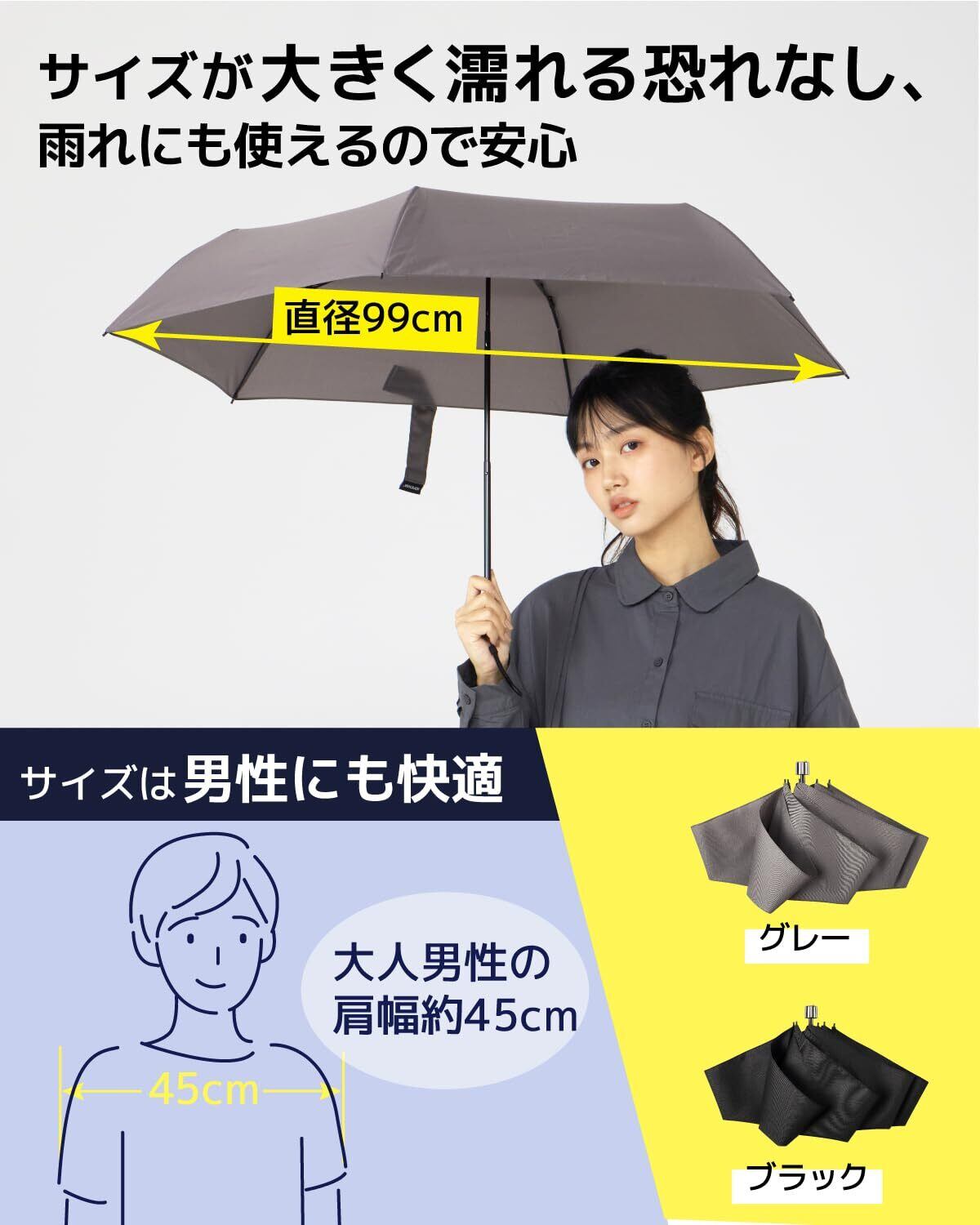 【超軽量・持ち運び便利】直径約100cmの大き、さで重さはわずか150gです!スマホよりかなり軽く、持っていることを忘れてしますほどの重さで、毎日通学、通勤にストレスなく持ち運べます。突然の雨に大活躍してくれます。折りたたむ時の長さは24cmです。折りたたむ時の直径は3.5cmです。