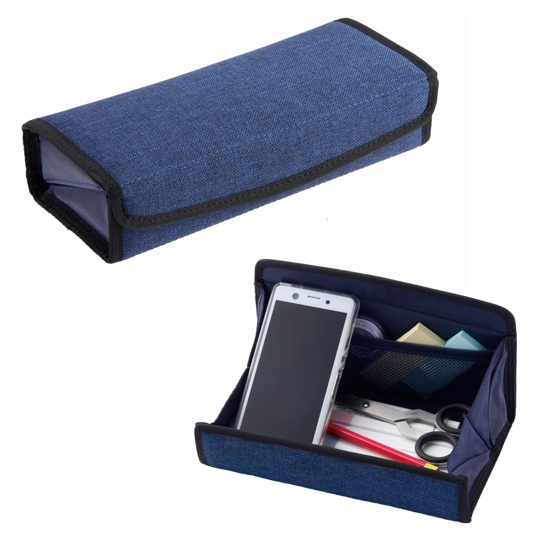 「COHACO NEO(コハコネオ)ペンケースM」はマグネット仕様のため、力を入れずに片手で簡単に開閉できます。 フタが大きく開くので、収納物が一目で探しやすく、出し入れしやすいペンケースです。 内側には、付箋などを入れられるメッシュポケット付きで、スマートフォンを立てることもできます。 筆記具だけでなく、コスメ用品などの化粧ポーチとしても便利です。