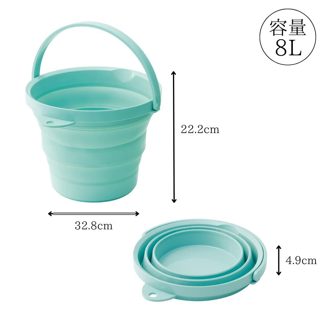 【新着商品】イセトウ(Isetou) 折りたたみバケツ ソフトバケツ8型 ミントグリーン 8L 幅32.8×奥行30.0×高さ4.9~22.2cm 日本製 耐熱100℃ 防災 折りたたみ バケツ 洗濯機 吊り下げ 丸形 コンパクト 清掃用品 洗車 I-614 | allstore3