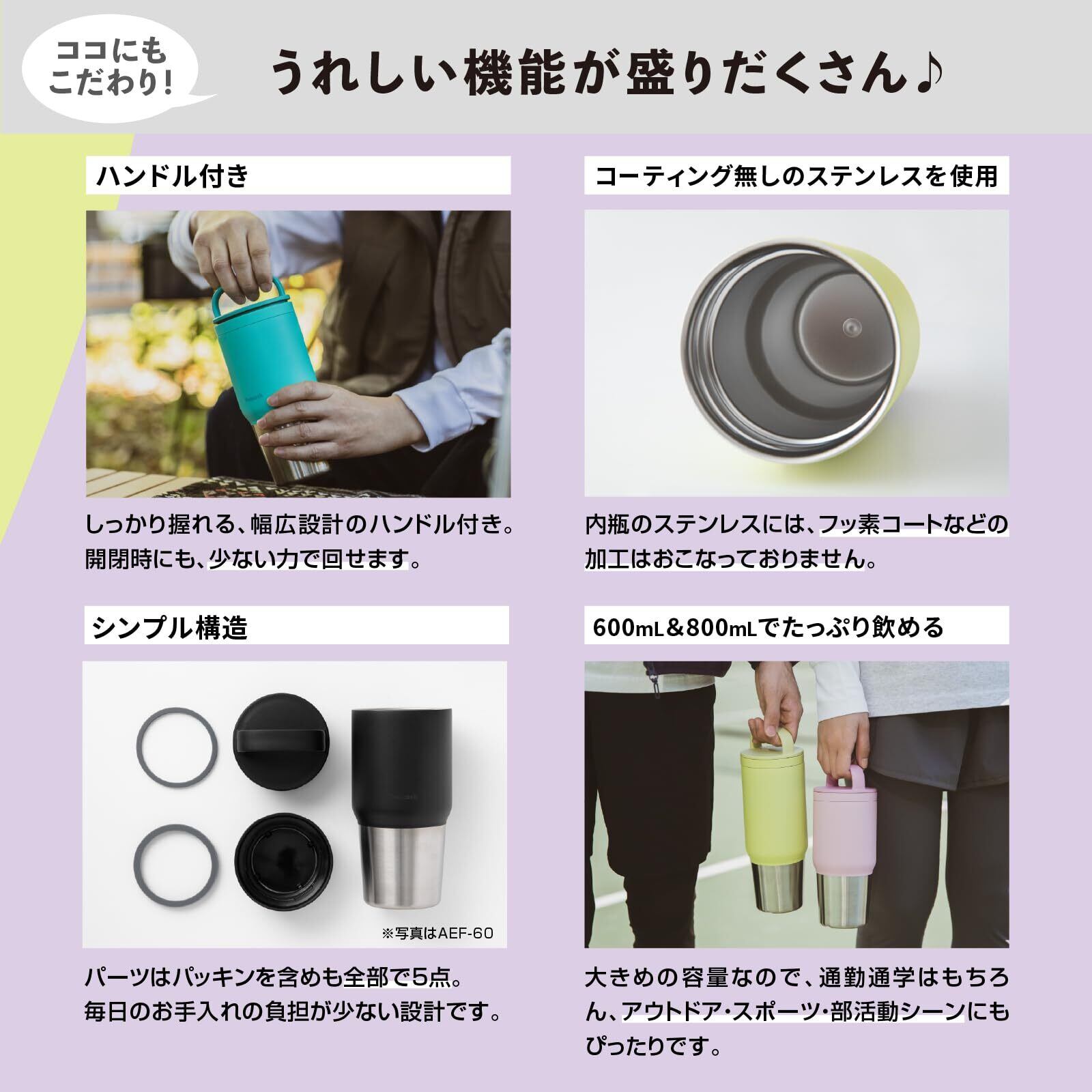 ●ステンレス真空断熱構造でしっかり外気温を遮断、保温保冷効果に優れています。●携帯しながら歩くのに便利なハンドル付き。●全パーツ食洗機対応。