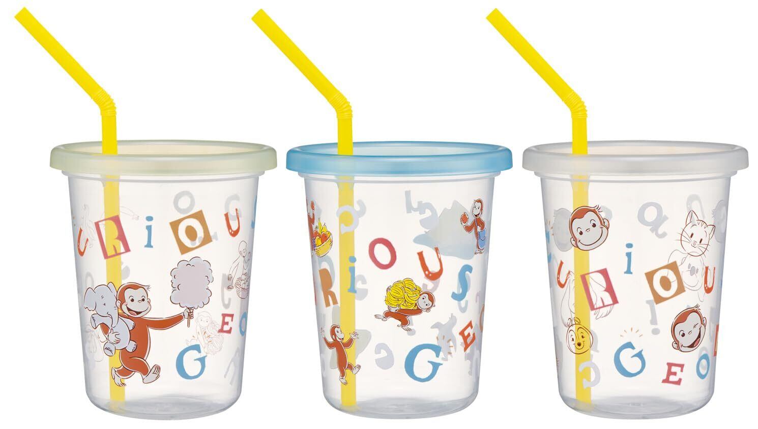 スケーター(Skater) ストロー付 タンブラー 320ml 3個 セット 日本製 おさるのジョージ アルファベット SIH3ST-A